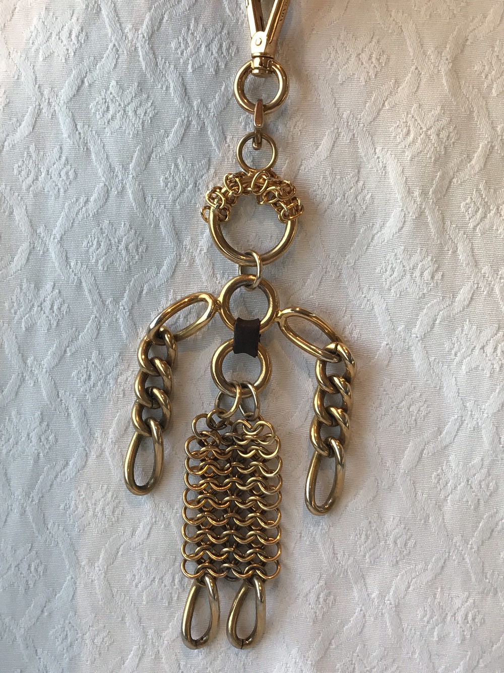 Mål: 23 cm lang og...Prada Robot Edward Trick Goldtone Chain «Girl» Metal Keychain Bag Charm.