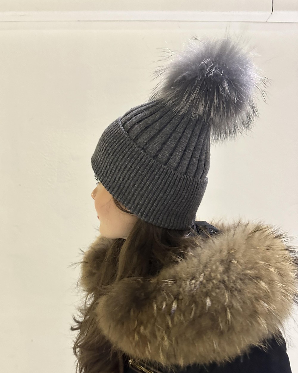 Ribb Ull lue med pelsdusk  grå - Guttogpike