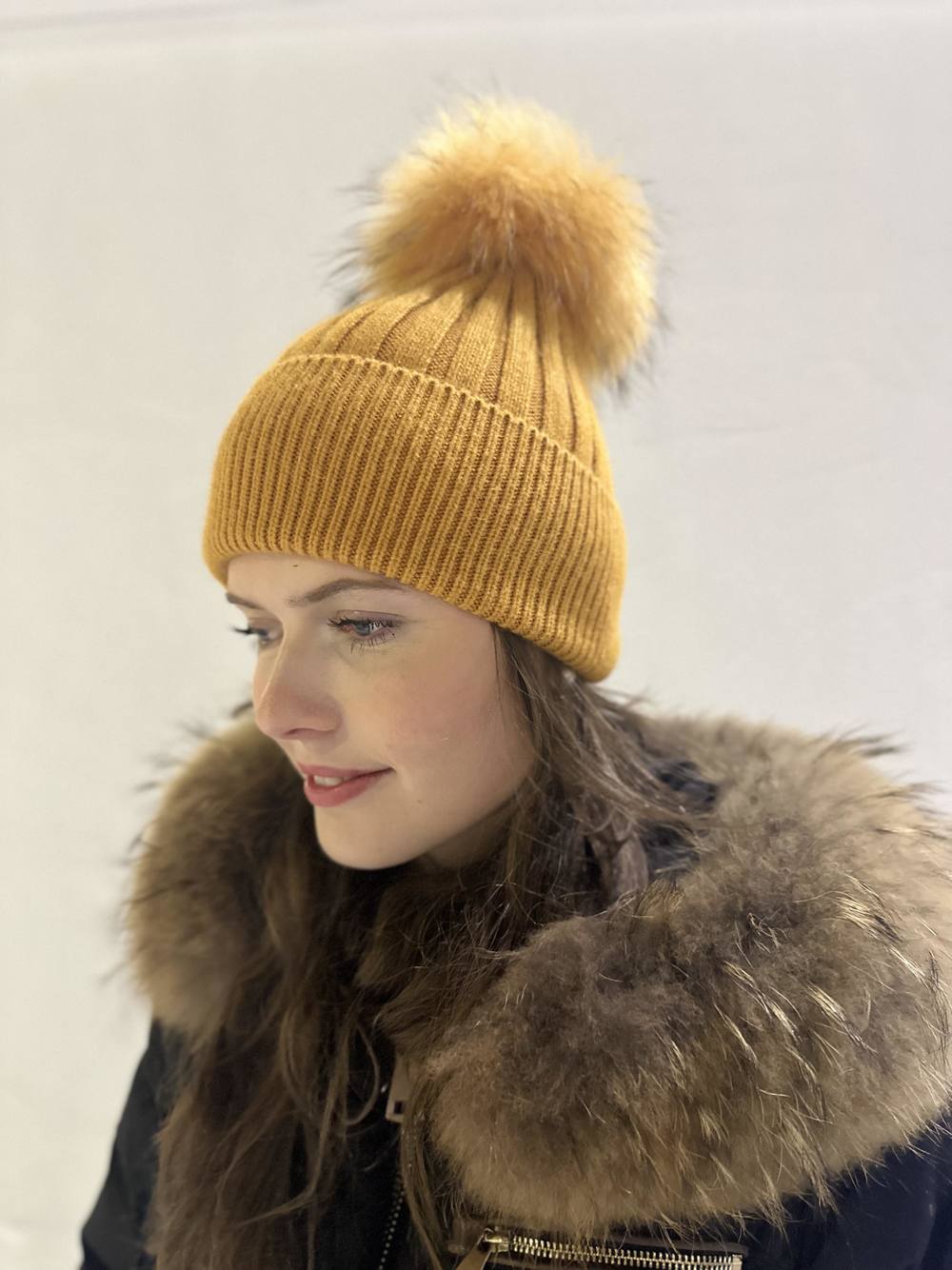 Ribb Ull lue med pelsdusk  gul - Guttogpike