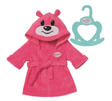 Når BABY born Little har kommet ut av badekaret, tar hun på seg den myke, rosa badekåpen. Et lykkelig bjørneansikt med morsomme ører smiler på hetten til kåpen. Den lille bjørnen må synes det er gøy å bli vasket. Badekåpen er designet i en lett passform som lett kan tas av og på, selv av de minste barnehender.