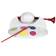 Dette malesettet kommer med pensel og seks malingsbokser i ulike farger.