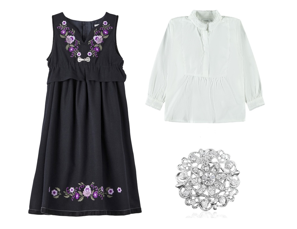 MERKER / Name It / Festdrakt Lilla blomst med skjorte