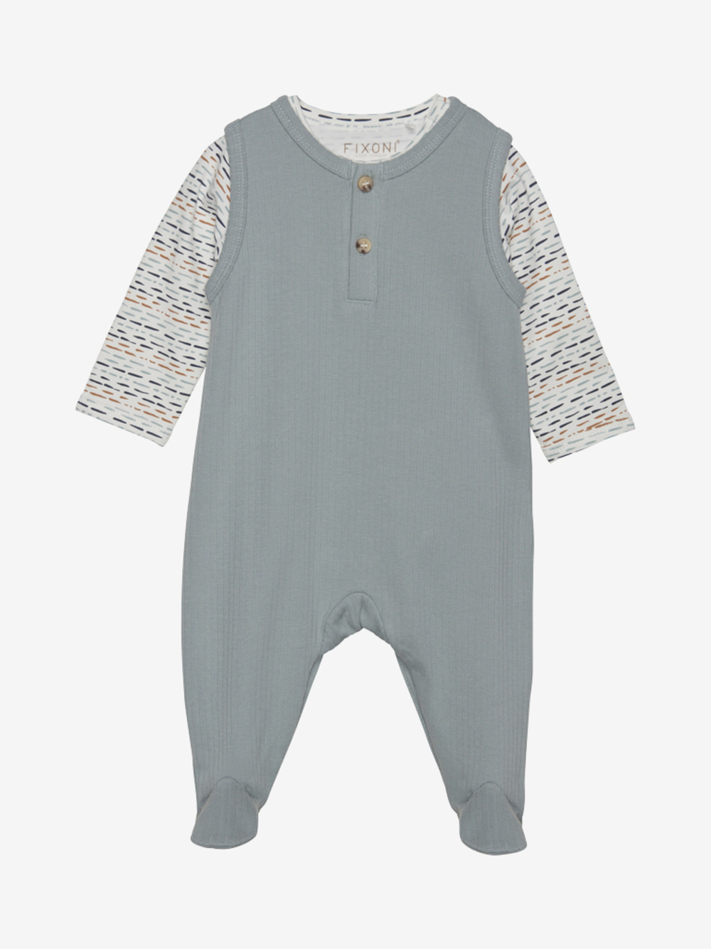 Enkel sparkebukse i ribb. Sparklebuksen er med fot. Denne kommer i sett med matchende body.