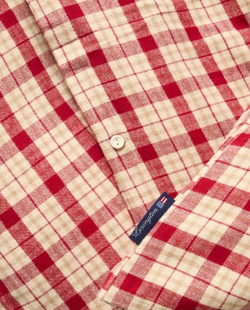 Skap det perfekte koselige tilfluktsstedet med vårt rød/beige rutete bomullsflanell sengesett fra vår Holiday 25-kolleksjon. Dette luksuriøse flanellsengetøyet har et klassisk rutemønster i varme røde og beige toner, som bringer festlig sjarm til soverommet ditt. Laget av 100 % høykvalitets bomull med tradisjonelt kypervev, er denne flanellen børstet både innvendig og utvendig i både garn- og stoffstadiet, noe som skaper en eksepsjonelt myk og varm søvnopplevelse. 110 trådantallet sikrer holdbarhet samtidig som den bevarer den karakteristiske flanellkomforten. OEKO-TEX-sertifiseringen garanterer at stoffet er fritt for skadelige stoffer, noe som gjør det trygt for hele familien. Fullført med gjennomtenkte detaljer som putevar med konvoluttbrett og Lexingtons signatur logo gummiknapper på dynetrekket.Les mer