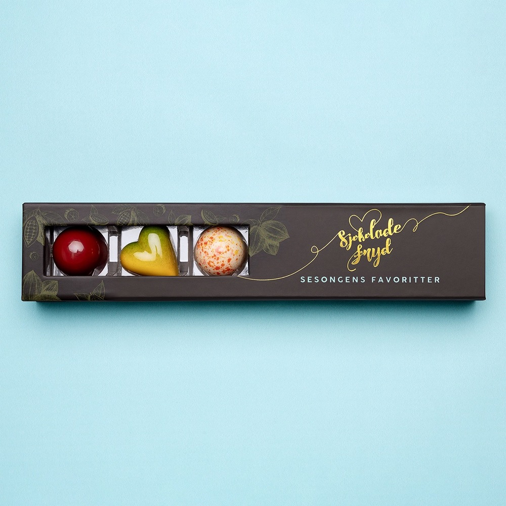 Vår populære 6 biters gaveeske, akkurat passe stor som en liten gave eller smakfull påskjønnelse til deg selv. Her har vi satt sammen 6 unike...Vår populære 6 biters gaveeske, akkurat passe stor som en liten gave eller smakfull påskjønnelse til deg selv. Her har vi satt sammen 6 unike biter Sjokoladefryd som varierer med sesongen.