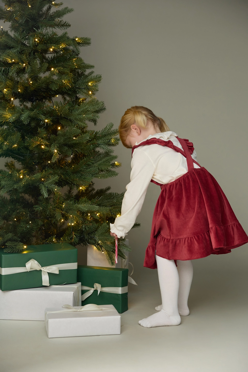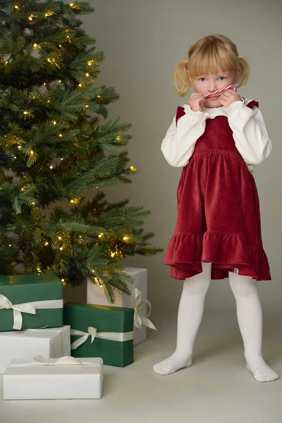 Olit Kjole! En skjønn forkle-kjole i kordfløyel med rysjer på skuldre, og med vidt skjørt. Denne er komfortabel og lett og ha på. En kjole...Olit Kjole! En skjønn forkle-kjole i kordfløyel med rysjer på skuldre, og med vidt skjørt. Denne er komfortabel og lett og ha på. En kjole i kordfløyel! Kombiner denne med Sonja Longsleeve, så får du et pent og pyntet antrekk til jul. En fin kjole man kan bruke lenge da denne også passer til andre anledninger med en t-skjorte under.