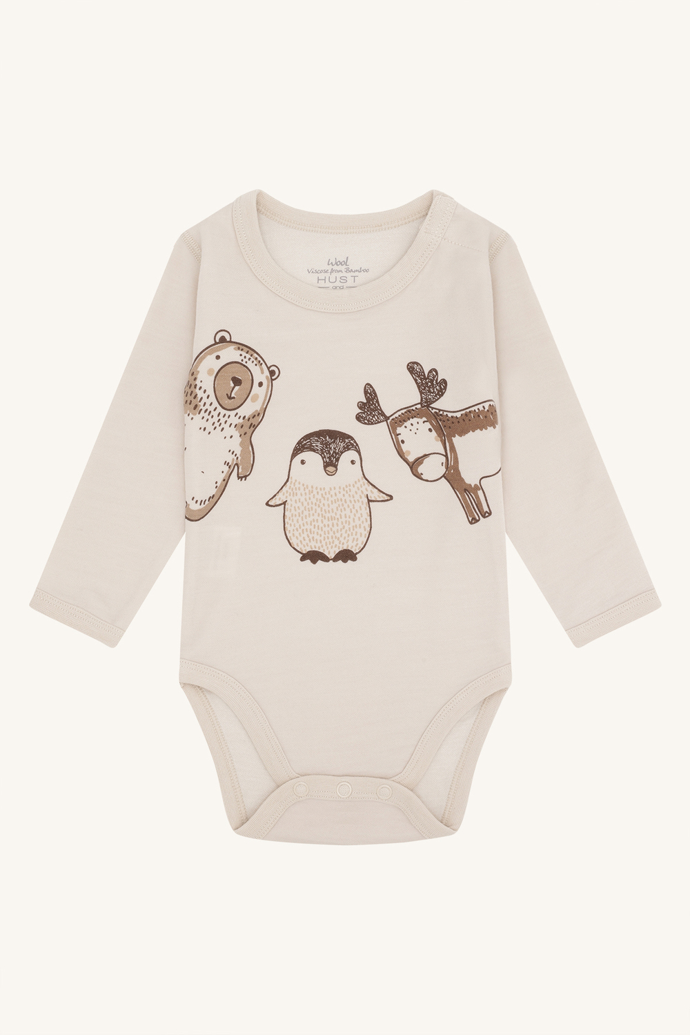 Body med dyreprint. Ytterside i ull, innside i bambus. Dette gjør at produktet skal kunne brukes av barn som er sensitiv mot å ha ull...Body med dyreprint. Ytterside i ull, innside i bambus. Dette gjør at produktet skal kunne brukes av barn som er sensitiv mot å ha ull rett mot huden.