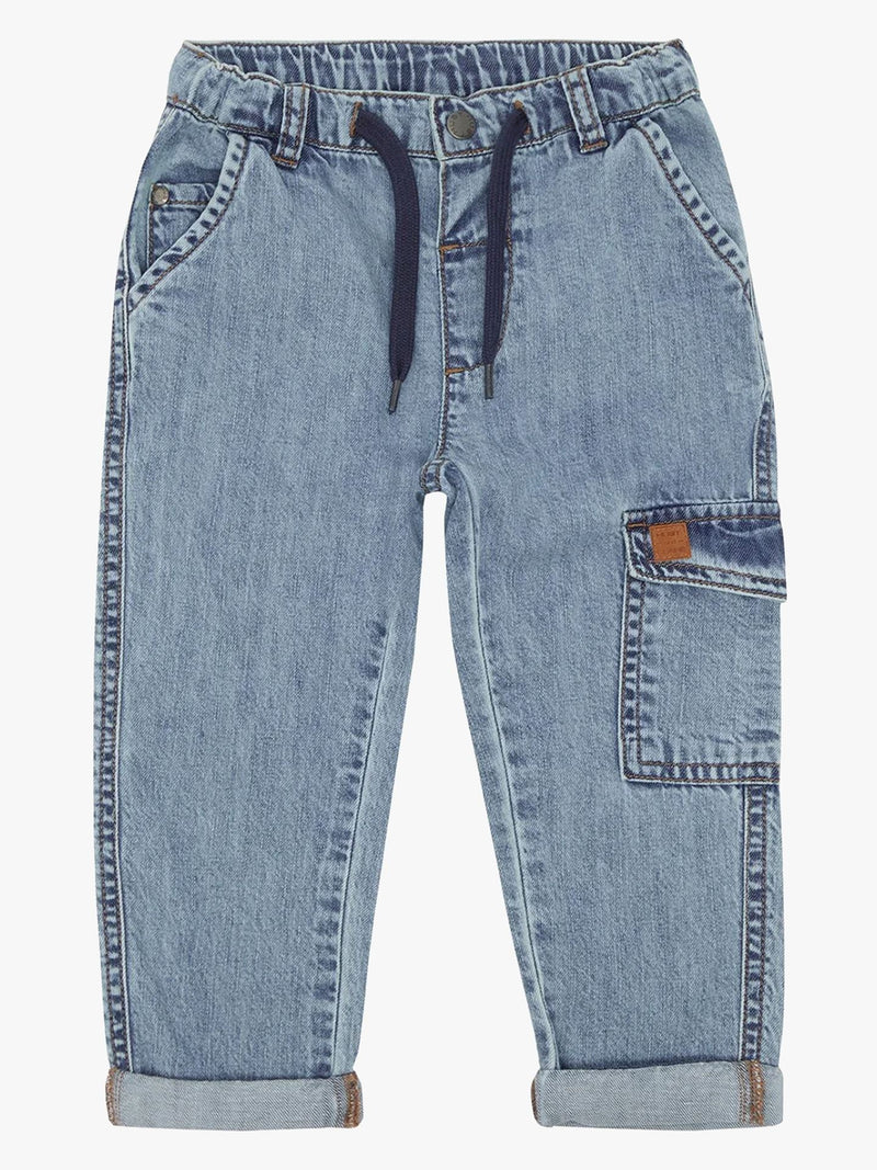 Myke og slitesterke denim-bukser med elastikk og knyting i midjen for optimal passform. De praktiske lommene foran, bak og på benet gir plass til små...Myke og slitesterke denim-bukser med elastikk og knyting i midjen for optimal passform. De praktiske lommene foran, bak og på benet gir plass til små skatter, mens brettede bukseben gir et moderne uttrykk.