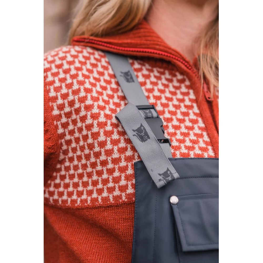 Buksa har doble spenner slik at ein kan gå på toalettet...Den kulaste regnbuksa enten du jobbar i barnehage, skal på festival eller ut å fiska.