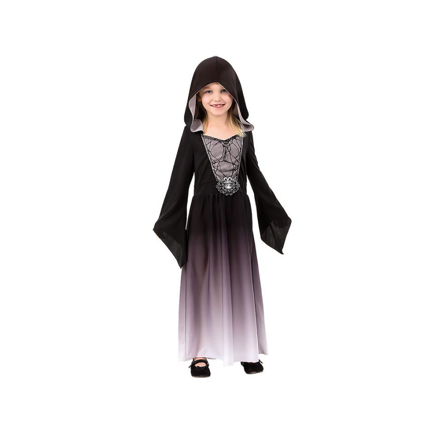 Kjole med hette, str. 134-140Kjolen går helt ned til gulvet, har stilig utskårede ermer og detaljer på brystpartiet. Hetten er romslig og stor. Denne passer...Kjole med hette, str. 134-140Kjolen går helt ned til gulvet, har stilig utskårede ermer og detaljer på brystpartiet. Hetten er romslig og stor. Denne passer perfekt til utkledning som en heks eller kanskje en skummel prinsesse. Bruk fantasien! Passer for barn fra 9-10år.Les mer