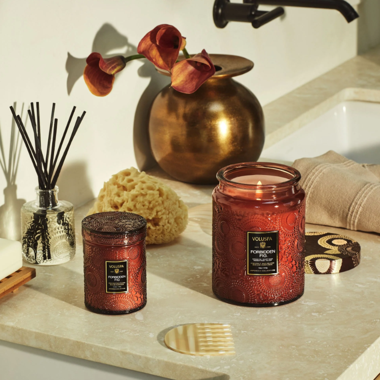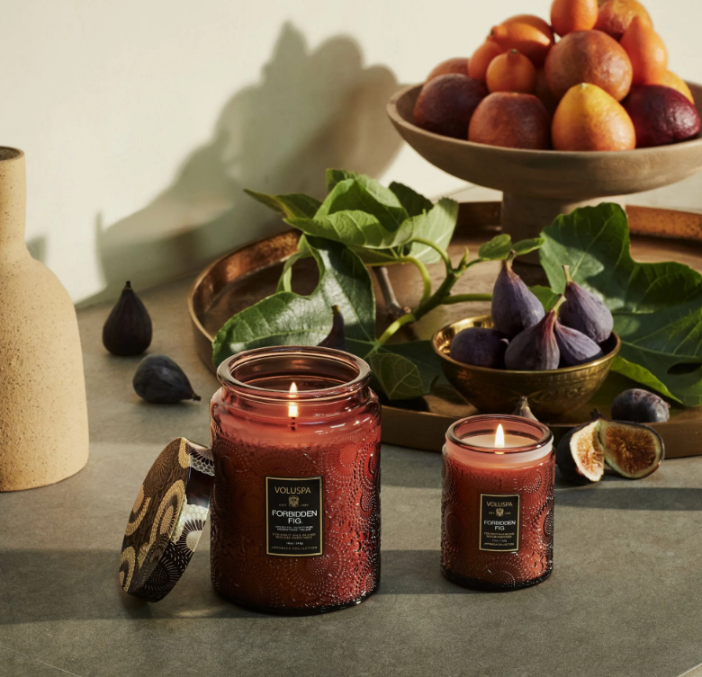 Unearth the pure magnificence of the wild fig tree. Rooted down in the dry sun-drenched soil, smooth white bark unfolds with fragrant facets of lush green leaves. This matriarch of the orchard is crowned with succulent dark fruits, filled with coveted sweet nectar and armed with sophisticated woody stalks. The rustling wind sweeps up the essence of plump wild berries and fallen crushed leaves, leaving you with an aromatic fragrance so sweet and alluring that it earns its name - Forbidden Fig.