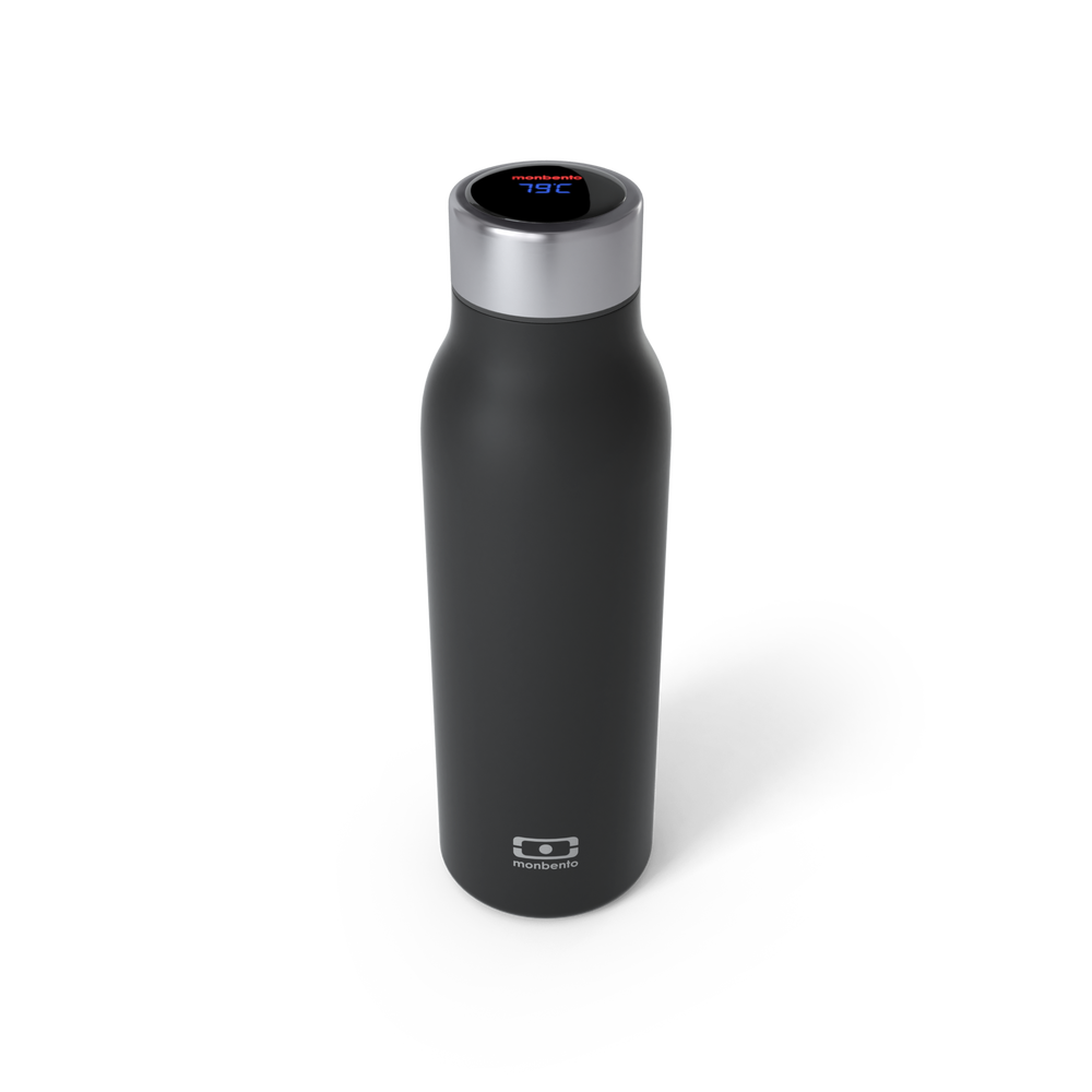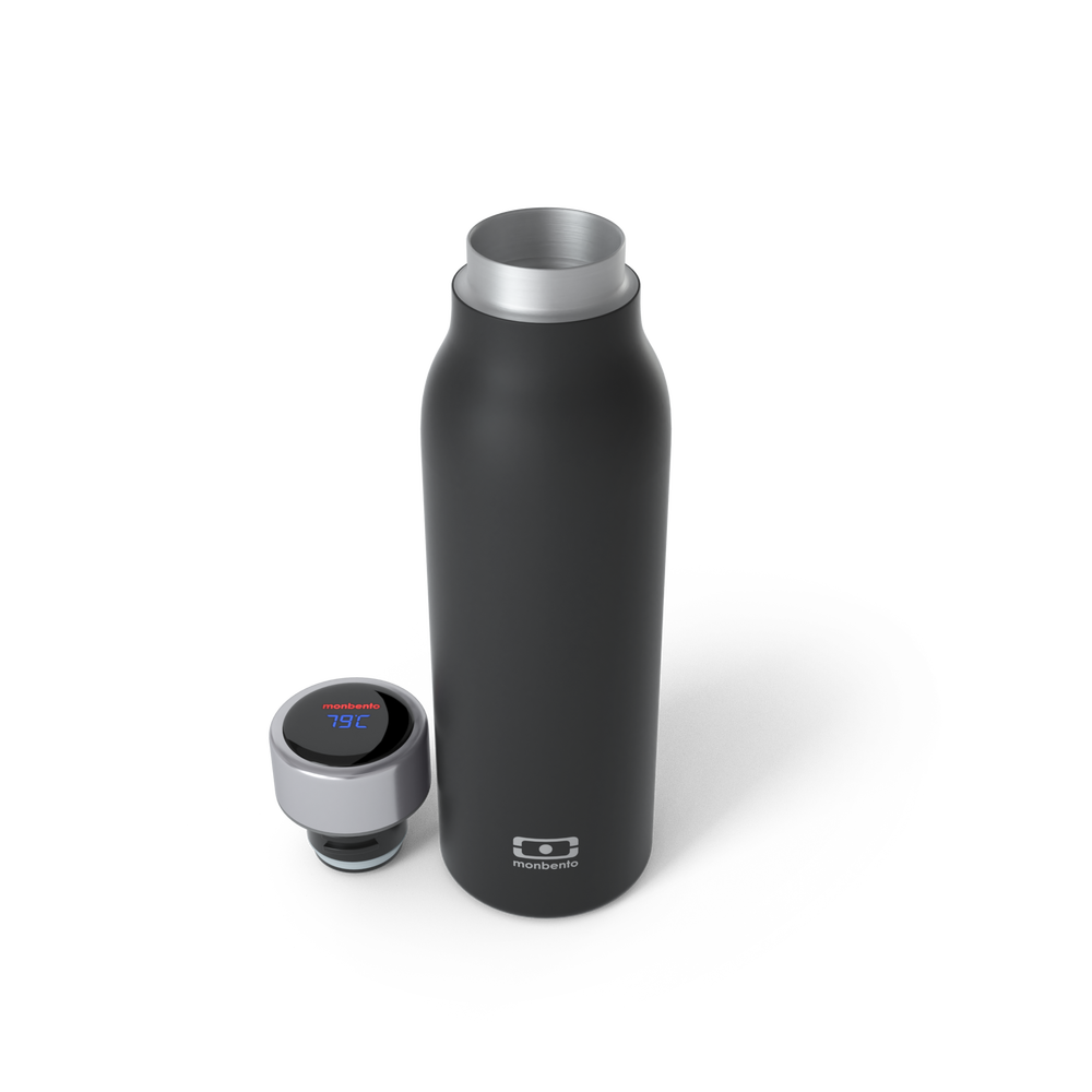 På lokket har den et display som viser deg...Lekker og smart drikkeflaske fra Monbento. Flasken holder drikken din varm eller kald i inntil 12 timer.