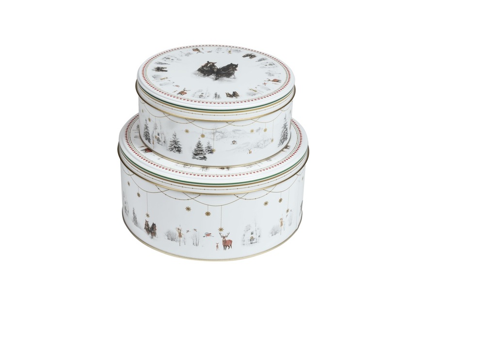 To vakre runde bokser i Julemorgen Serien, som egner seg godt til oppevaring av kaker, julegodt eller bakverk. Boksene er dekorert med sine poetiske og...To vakre runde bokser i Julemorgen Serien, som egner seg godt til oppevaring av kaker, julegodt eller bakverk. Boksene er dekorert med sine poetiske og minnerike bilder i kolleksjonen Julemorgen Story, og er et vakkert og funksjonelt tilskudd til juledekorasjonen i hjemmet. Produktet inneholder to bokser som passer inn i hverandre på Ø18 x H7,5 cm og Ø22 x H10,5 cmLes mer
