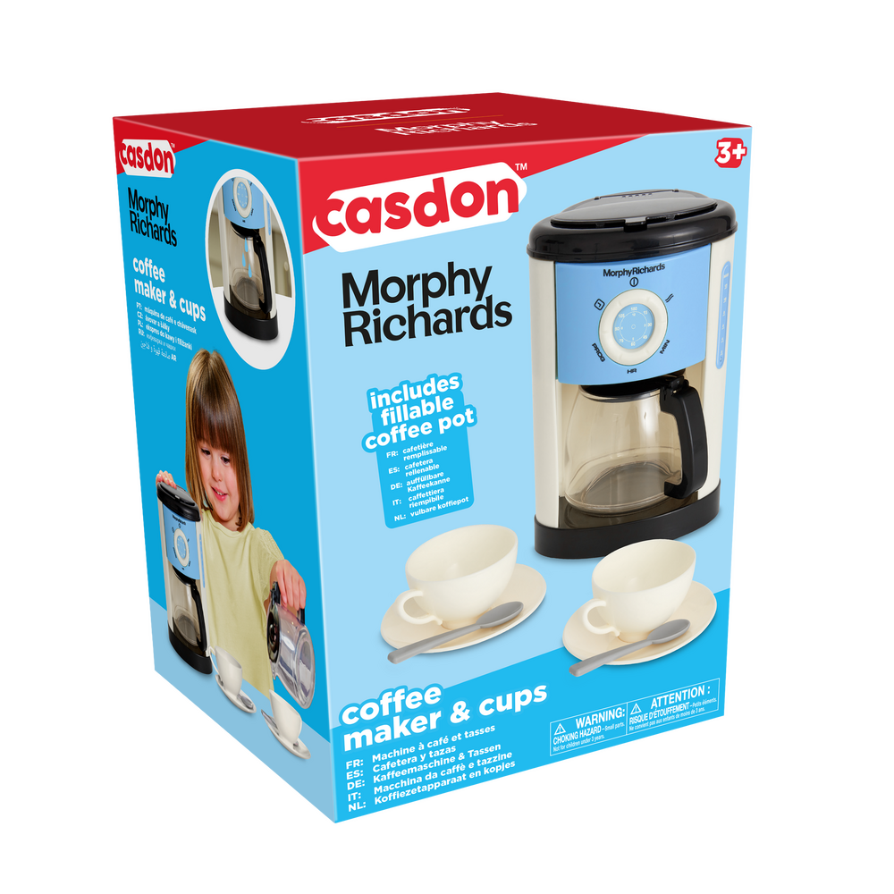 Det finnes ingen bedre måte å starte dagen på enn med en varm kopp! Nå kan også din lille (og alle kosedyrene deres!) være med...Det finnes ingen bedre måte å starte dagen på enn med en varm kopp! Nå kan også din lille (og alle kosedyrene deres!) være med og starte dagen på riktig måte. Morphy Richards kaffemaskin ser akkurat ut som den ekte, og gjenskaper hver eneste detalj ned til en T (eller skal vi si te!). Den har et fyllbart kammer som lar vann dryppe ned i kaffekannen og en vannivåindikator for supernøyaktig helling, og denne kaffemaskinen lager byens beste brygg. Enten det er for å arrangere en sammenkomst eller ta en prat med venner, har denne kaffemaskinen alt som trengs. Den leveres med to kopper, skåler og skjeer, og gir det ultimate oppsettet for en lang prat over en koselig kopp. I ekte Morphy Richards-stil er denne lekekaffemaskinen superstilfull, med det ikoniske røde merket og logoen. Den vil se fantastisk ut i ethvert fantasikjøkken, enten alene eller sammen med andre Morphy Richards-apparater.Les mer