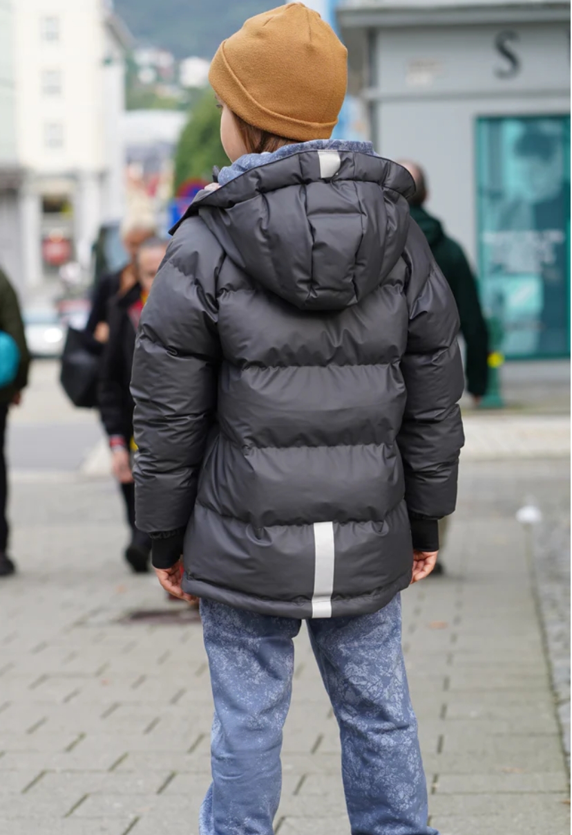 Den fantastisk populære bobleregnjakka til junioren er tilbake! Laga i PU materiale med ei vannsøyle på 10 000 mm. Desse er heilt vanntette der...Den fantastisk populære bobleregnjakka til junioren er tilbake! Laga i PU materiale med ei vannsøyle på 10 000 mm. Desse er heilt vanntette der regnet prellar av stoffet. Jakkane har vattering i form av kunstfiber så her kan junior halde seg varm og heilt tørr når hausten sett inn for fullt. Det syntetiske foret held på varmeevna når det blir vått, i motsetning til dun, og sidan dette er ei regnjakke har me valt bort dunet. Jakke er slitesterk og kan vaskast som vanleg PU-regntøy utan å miste form og funksjon. I tillegg tørkar syntetiske materialar raskare enn naturleg dun, noko som er ideelt når PU-stoffet ikkje skal i tørketrommelen. I tillegg har jakka sjølvsagt teipa og sveisa saumar