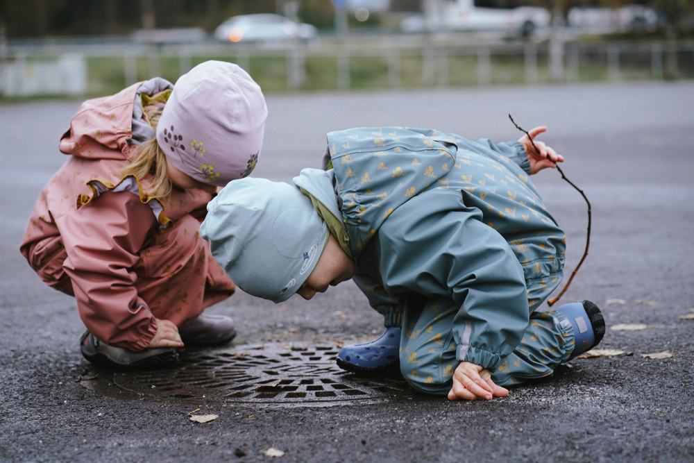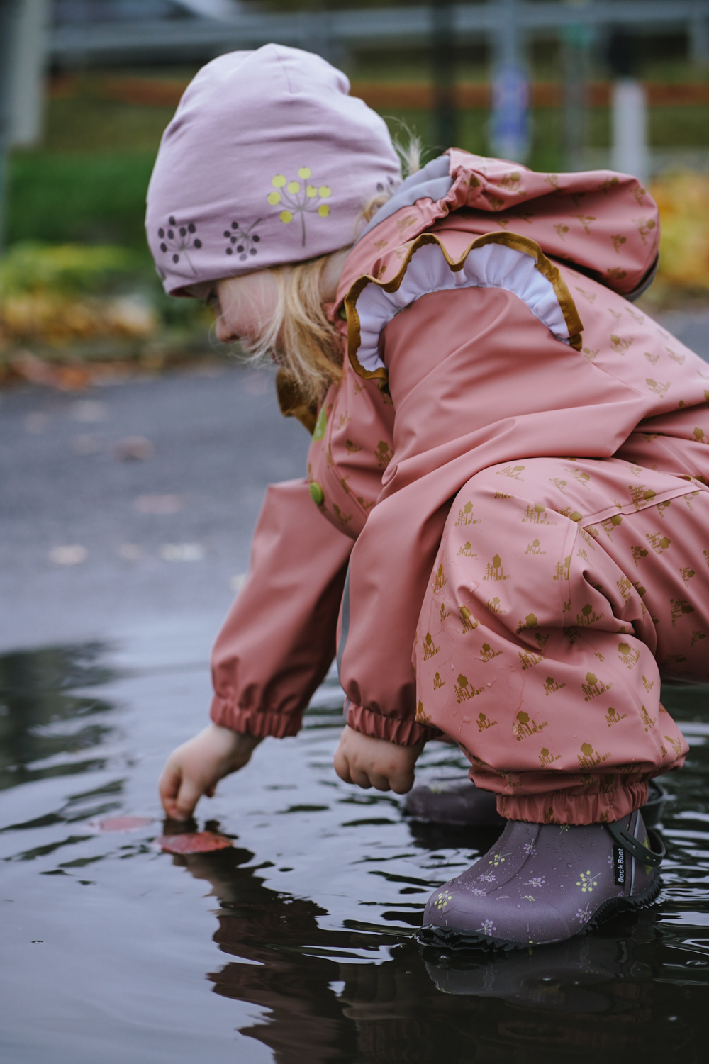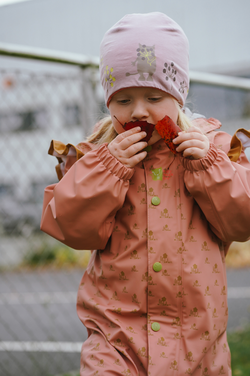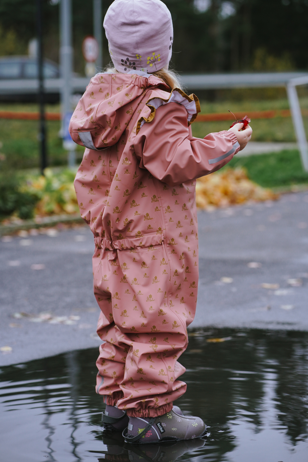 Regndressen er stor i størrelsen. Det er ikkje behageleg for bornet å bruke for store klede. Då mistar dei sin bevegelsesfrihet når dei er ute og leikar, og plagget blir slitt feil.