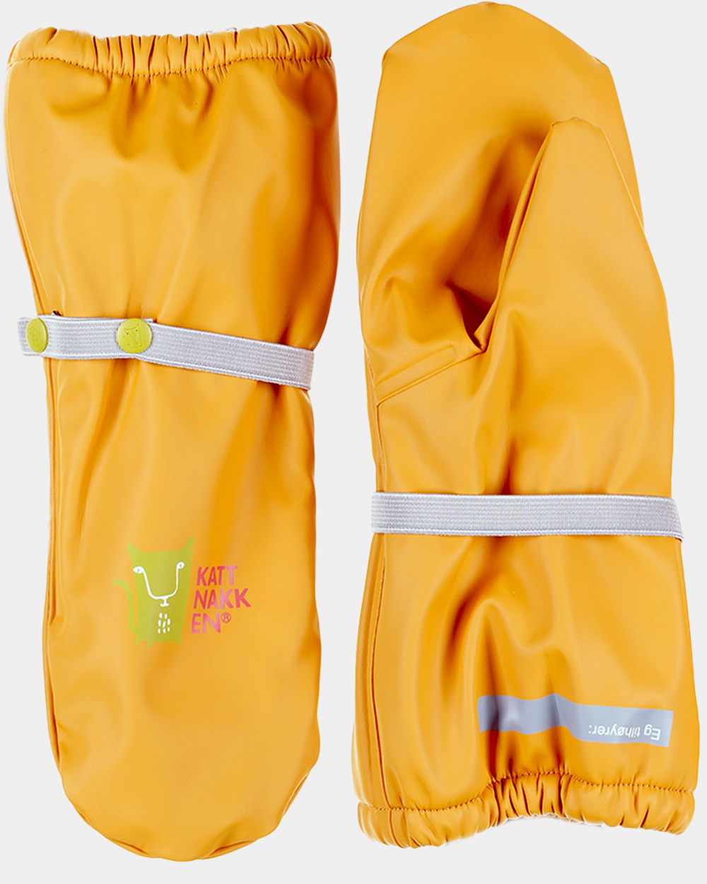 Å leike i vatn er det kjekkaste som er, men fingrane kan fort bli veldig kalde når tempraturen er lav. Difor anbefalar me å bruke...Å leike i vatn er det kjekkaste som er, men fingrane kan fort bli veldig kalde når tempraturen er lav. Difor anbefalar me å bruke regnvottar. Kattnakken sine regnvottar er i mjuk PU med fleecefôr, slik at ein held seg varm. Det er og namnefelt på vottane våre. Dei er lette å ta på og ein kan regulere strikken rundt slik at dei sitt godt på.