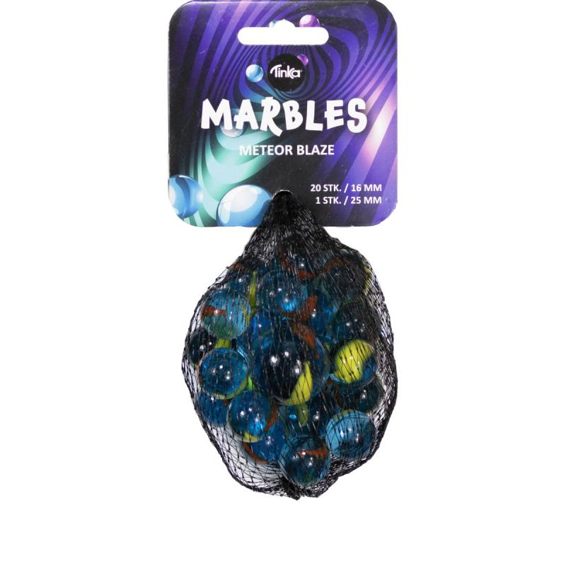 Klassisk klinkekulesett med spennende farger i blått, grønt og gult! Perfekt til lek både ute og inne. Settet inneholder 20 små kuler...Klinkekuler Meteor Blaze Tinka