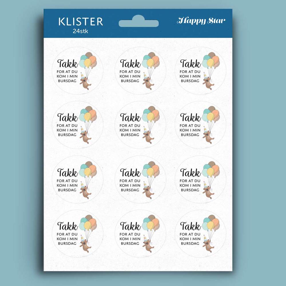 Flotte klister til den store dagen! Bruk dem til takkekort, godteposer, gjestegaver. Passer supert med vår gjennomsiktige puteeske, eller gaveesken i svart/hvit