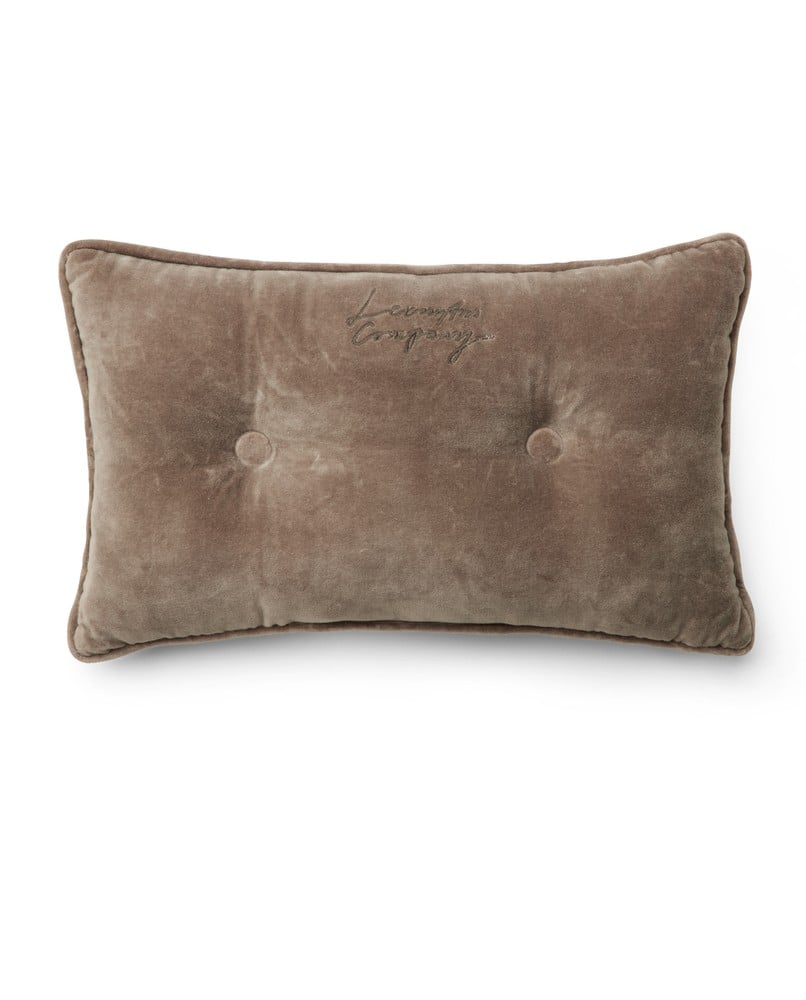 Knappet pute i økologisk bommulsfløyel Stone - Lexington