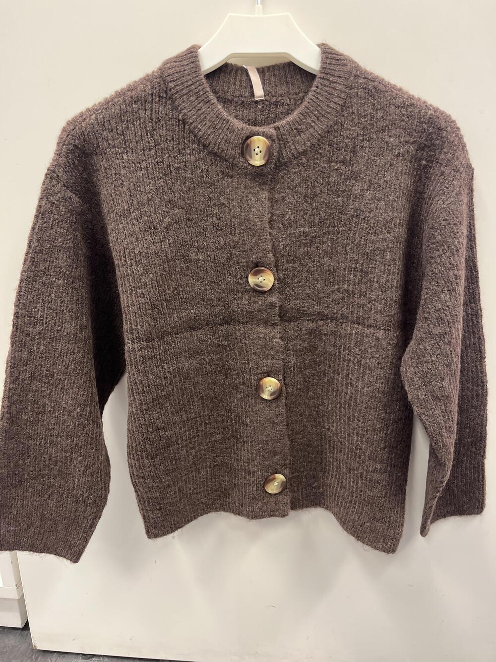 Herlig vardigan, med store knapper i front. Rille-struktur.