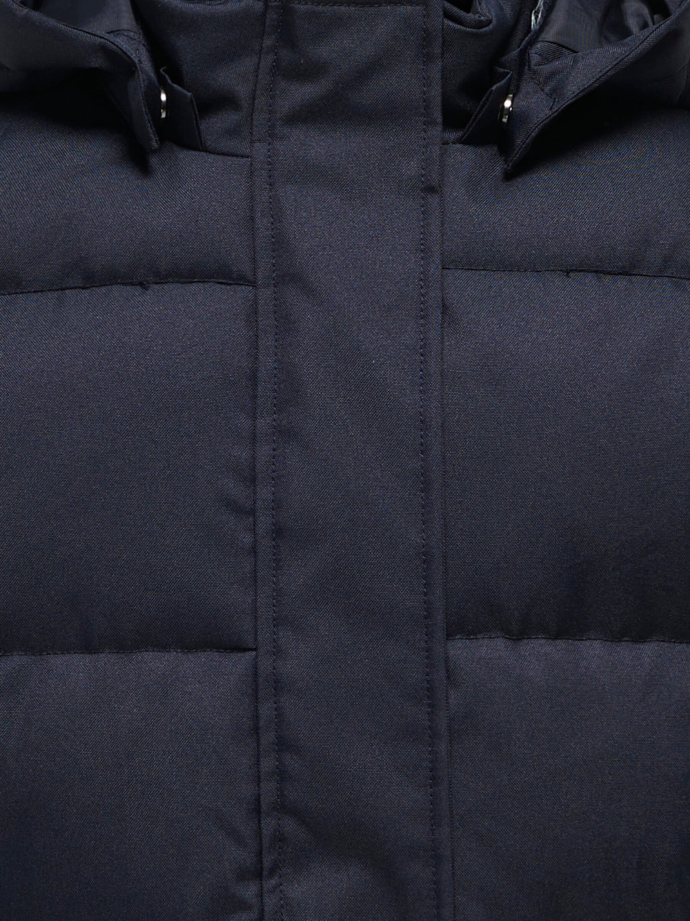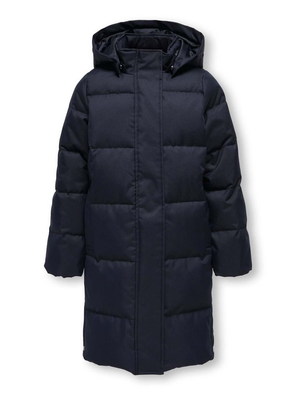 Fin pufferjakke i lengre modell. Klaff over glidelåsen i front.