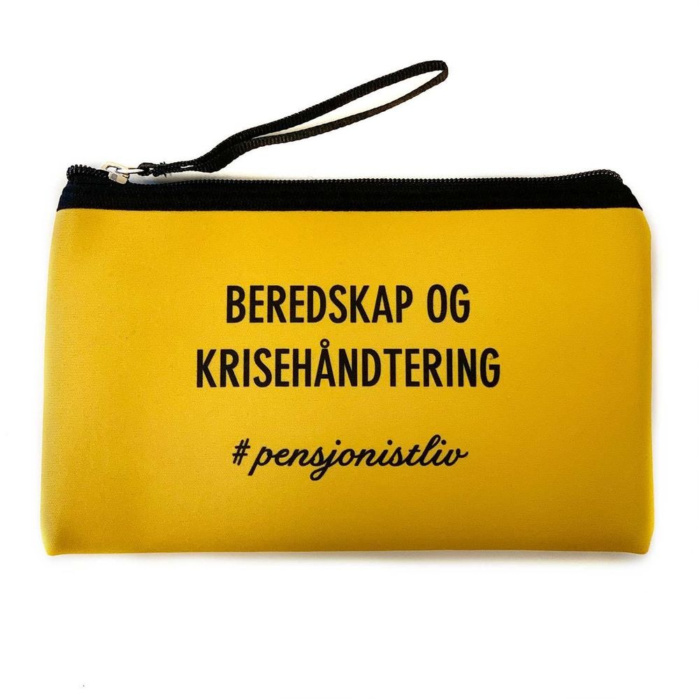 Gavetips til pensjonisten! En morsom veske/etui til å ha småting i. Ting som du trenger når krisen inntreffer, som plaster, briller eller favorittsjokoladen! I knallgulfarge...Gavetips til pensjonisten! En morsom veske/etui til å ha småting i. Ting som du trenger når krisen inntreffer, som plaster, briller eller favorittsjokoladen! I knallgulfarge slik at den er lett å se!;)