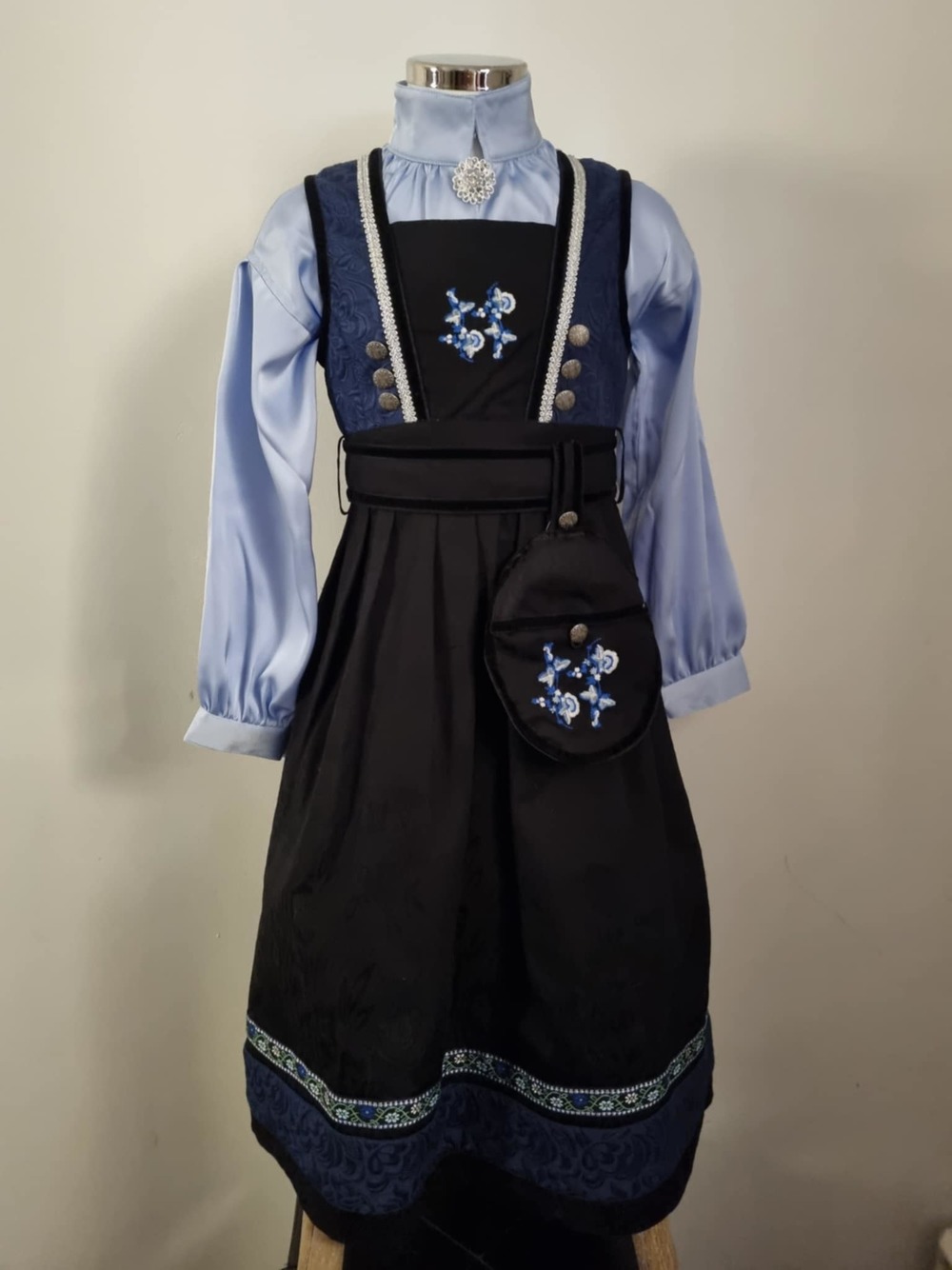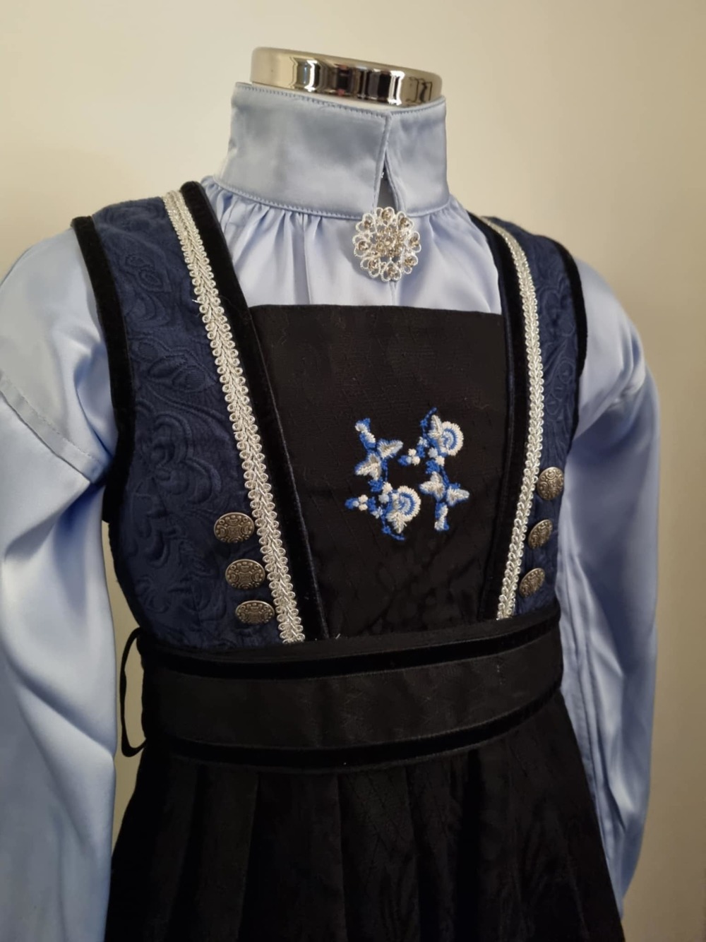 Kristin festdrakt med silkeskjorte, veske, brosje