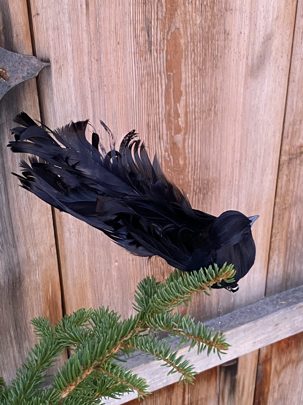 Fuglen har en klype under som gjør at den enkelt kan plasseres på en gren trollhassel eller på juletreet.
