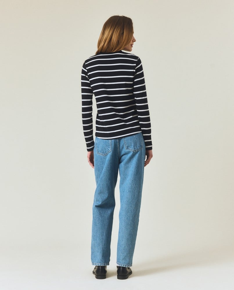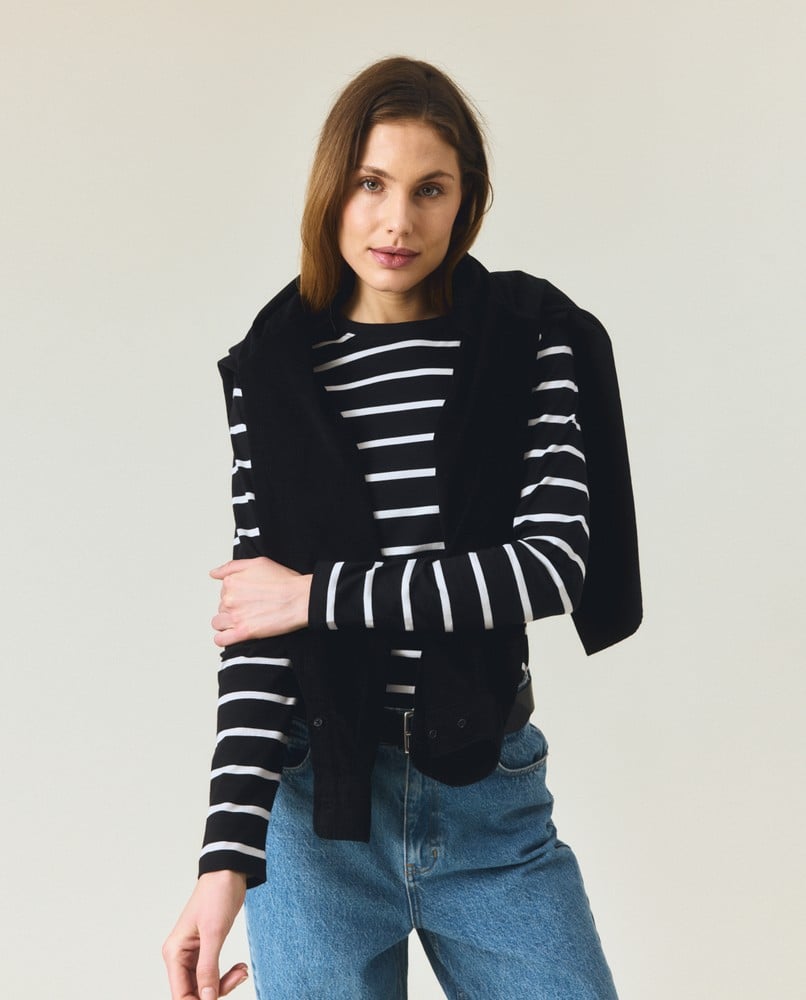 Langermet bommuls-t-skjorte,svart/hvite striper