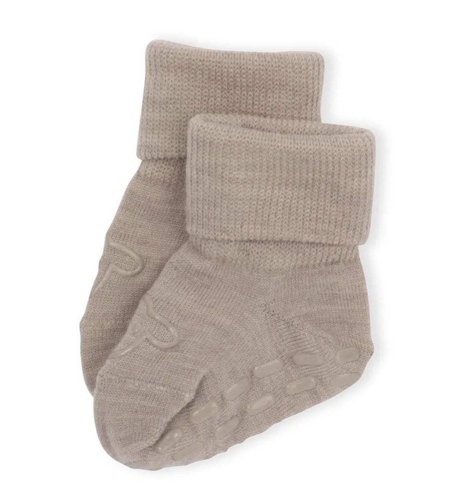 Å løpe rundt i barnehagen, eller å ta sine første skritt i ullsokker, kan være en utfordring. Derfor kan det være lurt å bruke sklisikre sokker! Våre ullsokker er laget av høykvalitets merinoull som puster, og derfor holder føttene varme og komfortable hele dagen, uten å bli klamme.