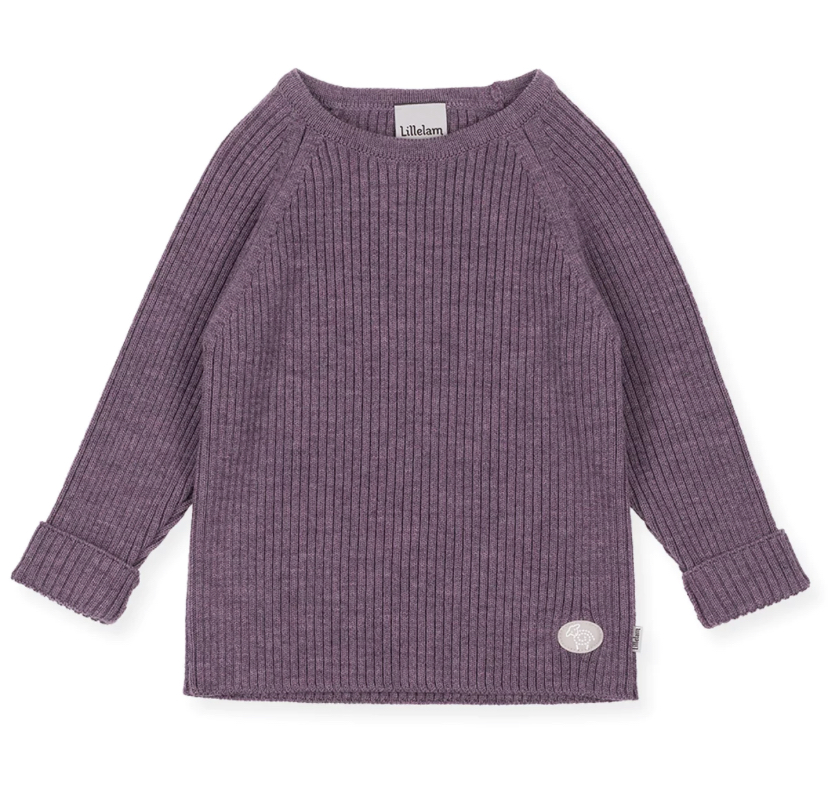 Lillelam genser ribb ull plomme