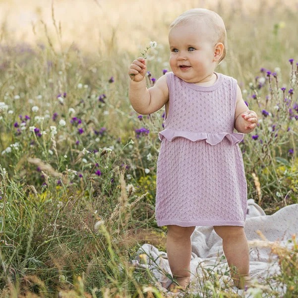 En skjønn sommerkjole med fine detaljer til de minste. Kjolen har et delikat hullmønster som gjør plagget ekstra lett og luftig. Perfekt for en sommerdag... Les mer