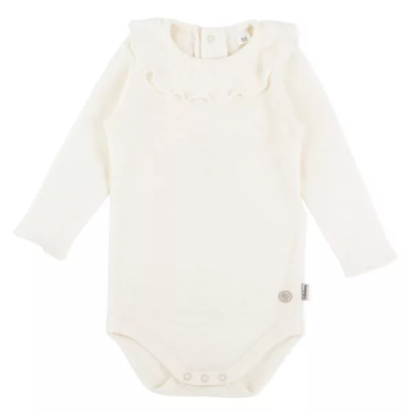 Nyhet! Ullbody med krave i den mykeste merinoull som er kløfri og myk mot huden. Bodyen er kjempesøt under andre plagg, eller kan brukes som...Nyhet! Ullbody med krave i den mykeste merinoull som er kløfri og myk mot huden. Bodyen er kjempesøt under andre plagg, eller kan brukes som en tynn genser. Den har trykknapper bak i nakken og i skrittet.