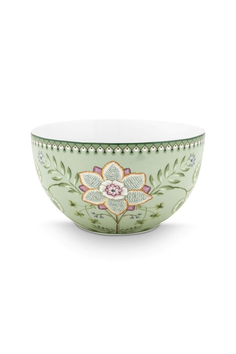 Denne store skålen er en del av vår Lily & Lotus-kolleksjon. Den lysegrønne skålen er dekorert med en fantasifull lilje i duse pastelltoner. Blomsten og...Denne store skålen er en del av vår Lily & Lotus-kolleksjon. Den lysegrønne skålen er dekorert med en fantasifull lilje i duse pastelltoner. Blomsten og de elegante bregnene er plassert symmetrisk, noe som gir skålen et moderne uttrykk.