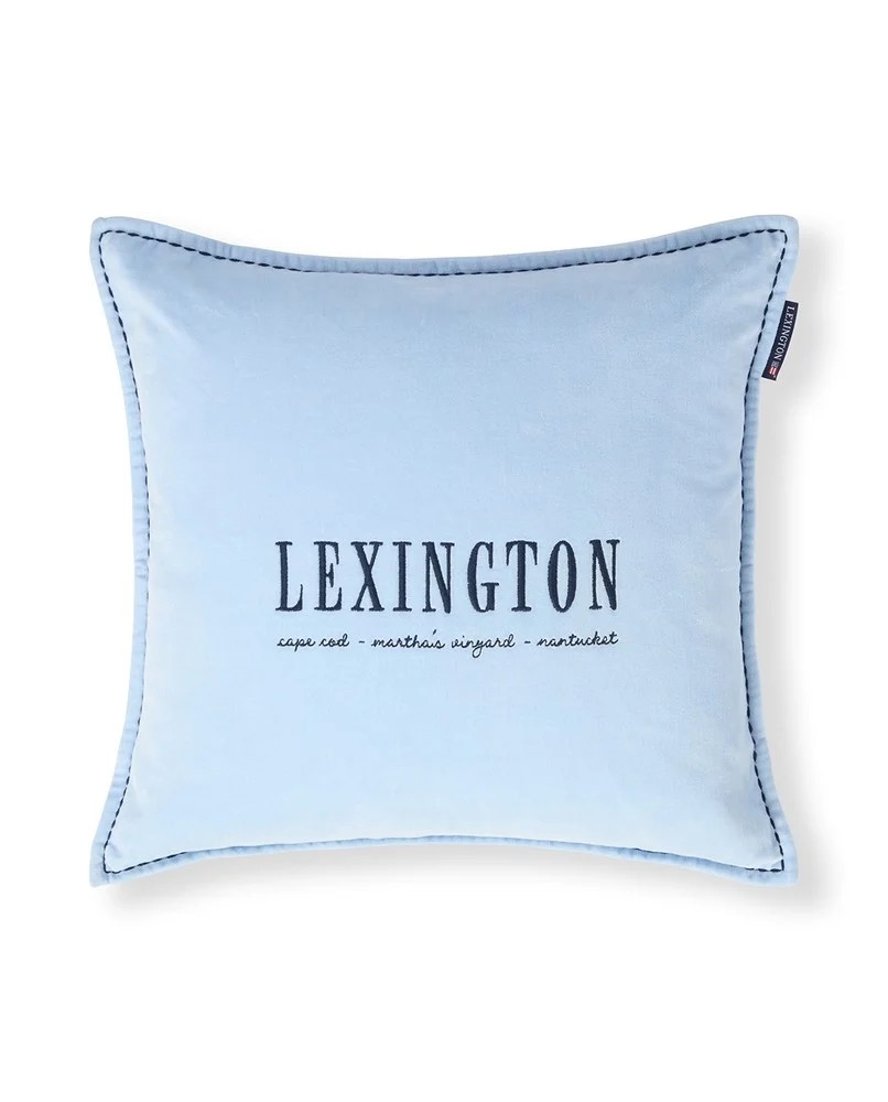 Det luksuriøse Blue Logo Organic Cotton Velvet putetrekket bringer et snev av sofistikert eleganse til ethvert rom. Laget av supersoft økologisk bomullsfløyel, har dette putetrekket et delikat brodert Lexington logodesign foran med kontrastsøm rundt hele puten. Den skjulte fargetilpassede glidelåsen i bunnen sikrer et sømløst utseende, mens den vevde Lexington logoetiketten i høyre øvre hjørne gir et autentisk sluttstrøk. Produsert i en sertifisert grønn fabrikk og Oeko-tex-sertifisert for din trygghet.