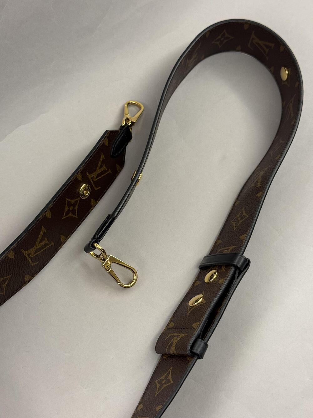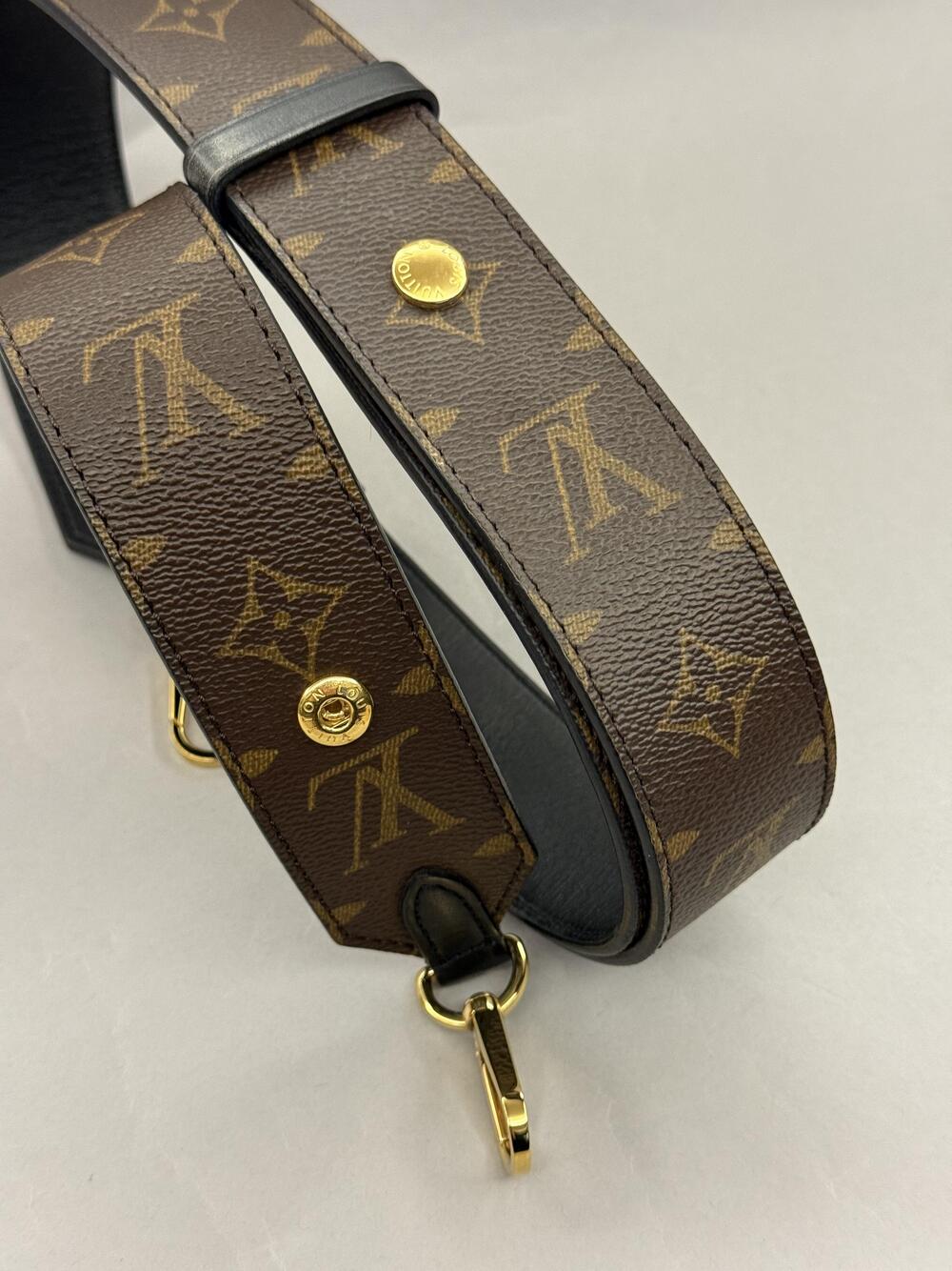 Louis Vuitton Bandoulieré reim i svart skinn og monogran canvas. Gullfarget hardware. Lengden kan reguleres. Kan brukes på alle Louis Vuitton vesker med feste, f...