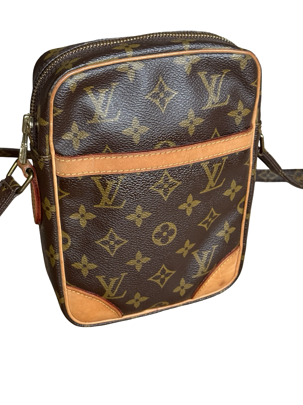 Louis Vuitton Danube fra 90 tallet i monogram canvas. Hardware i messing. Den har justerbar skulderstropp. Inni har den et stort rom. Den har også...Louis Vuitton Danube fra 90 tallet i monogram canvas. Hardware i messing. Den har justerbar skulderstropp. Inni har den et stort rom. Den har også et rom frempå.