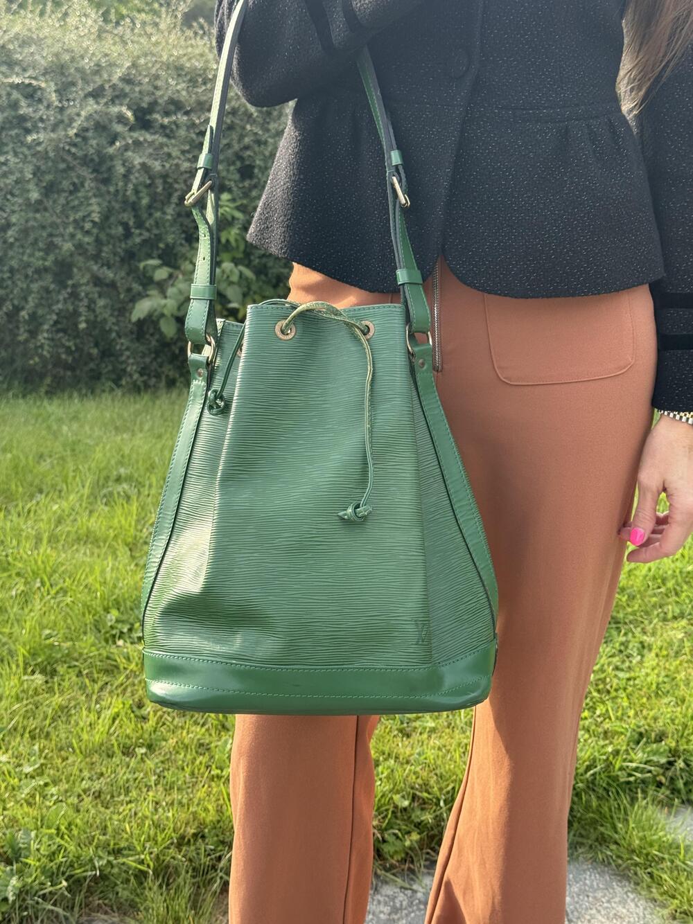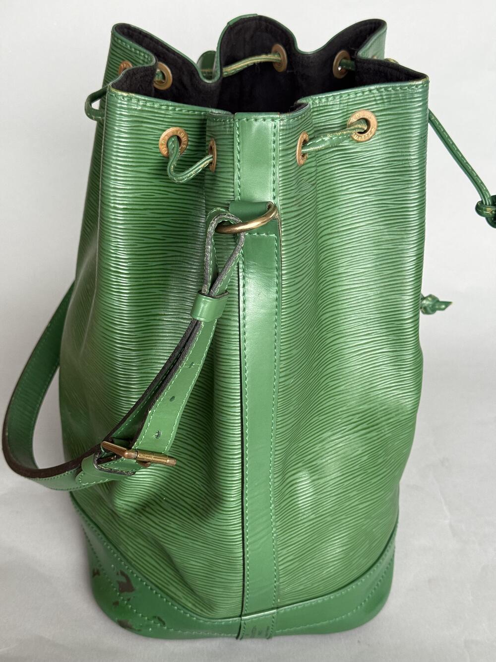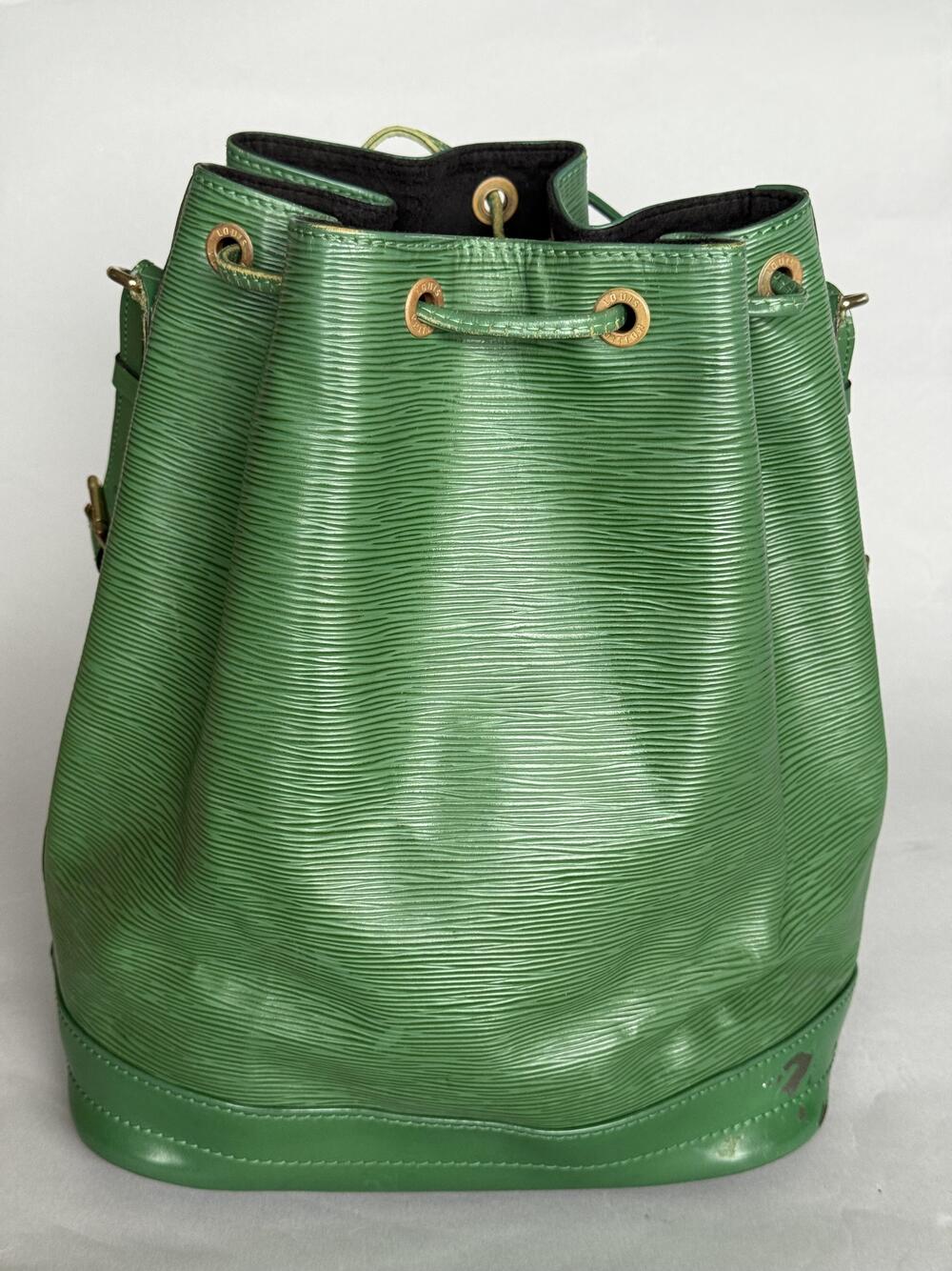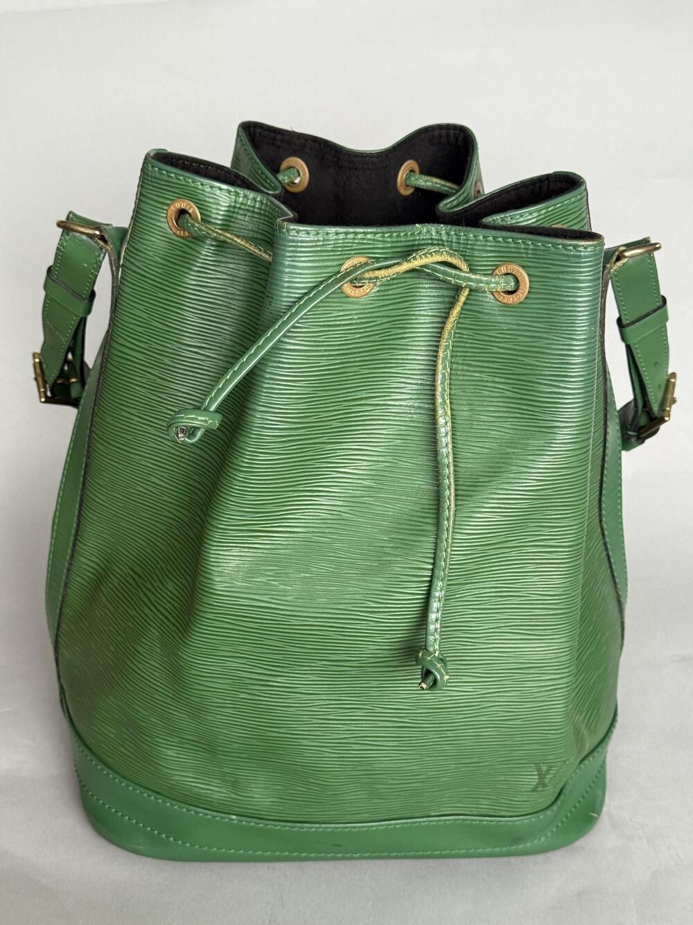 Louis Vuitton Noé GM (den største) fra 1993, i grønn med hardware i gullfarget messing. Den har en stor lomme som lukkes med drawstring og...Louis Vuitton Noé GM (den største) fra 1993, i grønn med hardware i gullfarget messing. Den har en stor lomme som lukkes med drawstring og har regulerbar skulderreim.