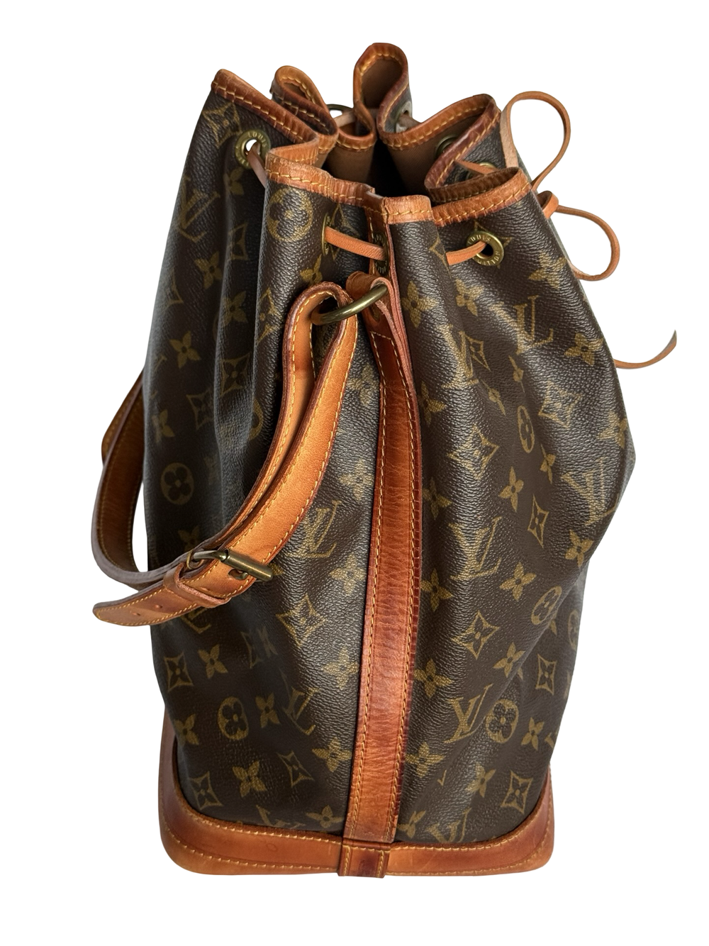 Louis Vuitton Noé GM (den største) fra 2001, i monogram canvas med hardware i gullfarget messing. Den har en stor lomme som lukkes med drawstring...Louis Vuitton Noé GM (den største) fra 2001, i monogram canvas med hardware i gullfarget messing. Den har en stor lomme som lukkes med drawstring og har regulerbar skulderreim.