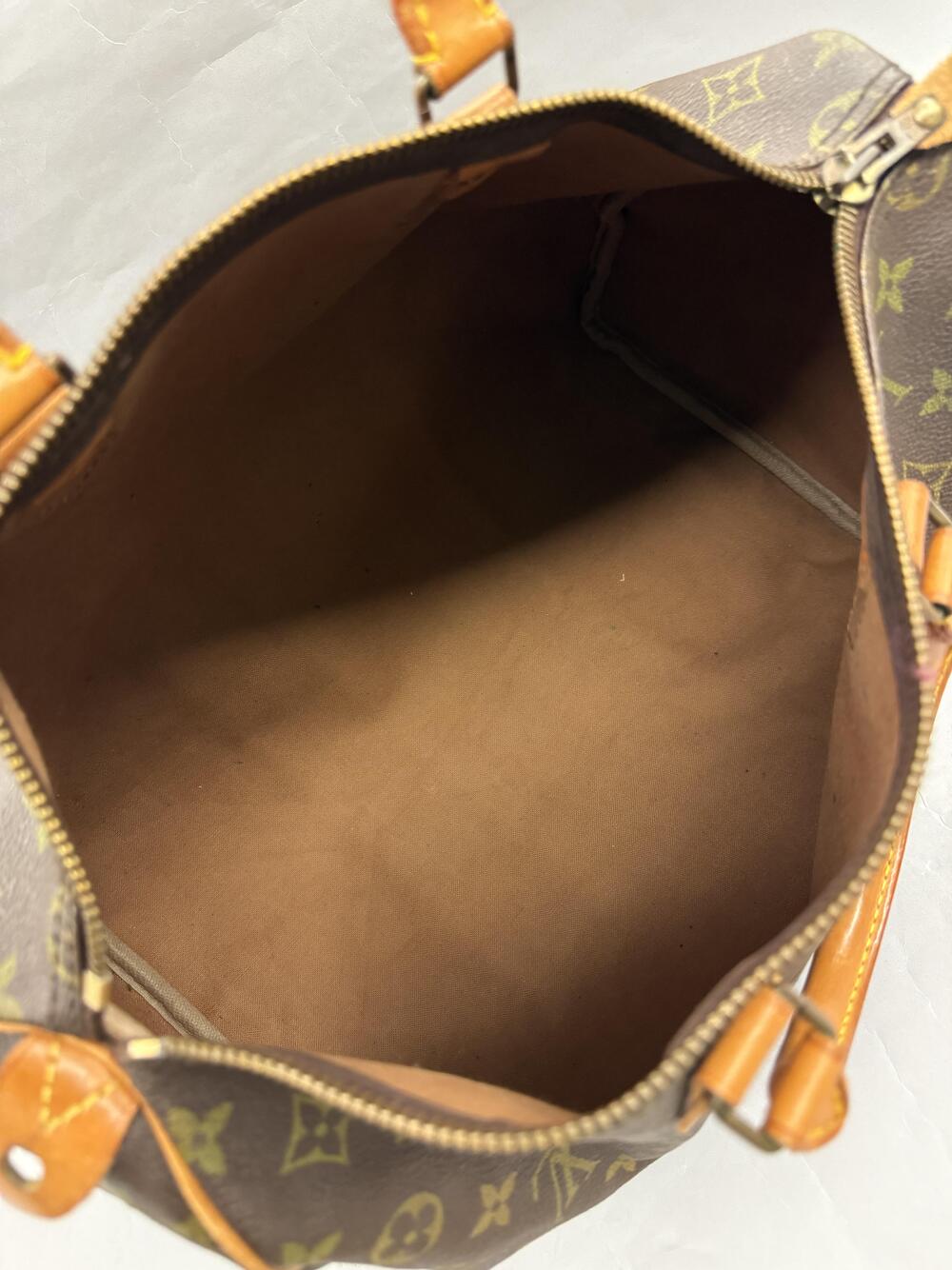 Louis Vuitton Speedy 35 i monogram canvas med detaljer i skinn og hardware i gullfarget messing. Den har en stor lomme, samt en liten, åpen...Louis Vuitton Speedy 35 i monogram canvas med detaljer i skinn og hardware i gullfarget messing. Den har en stor lomme, samt en liten, åpen sidelomme inni.
