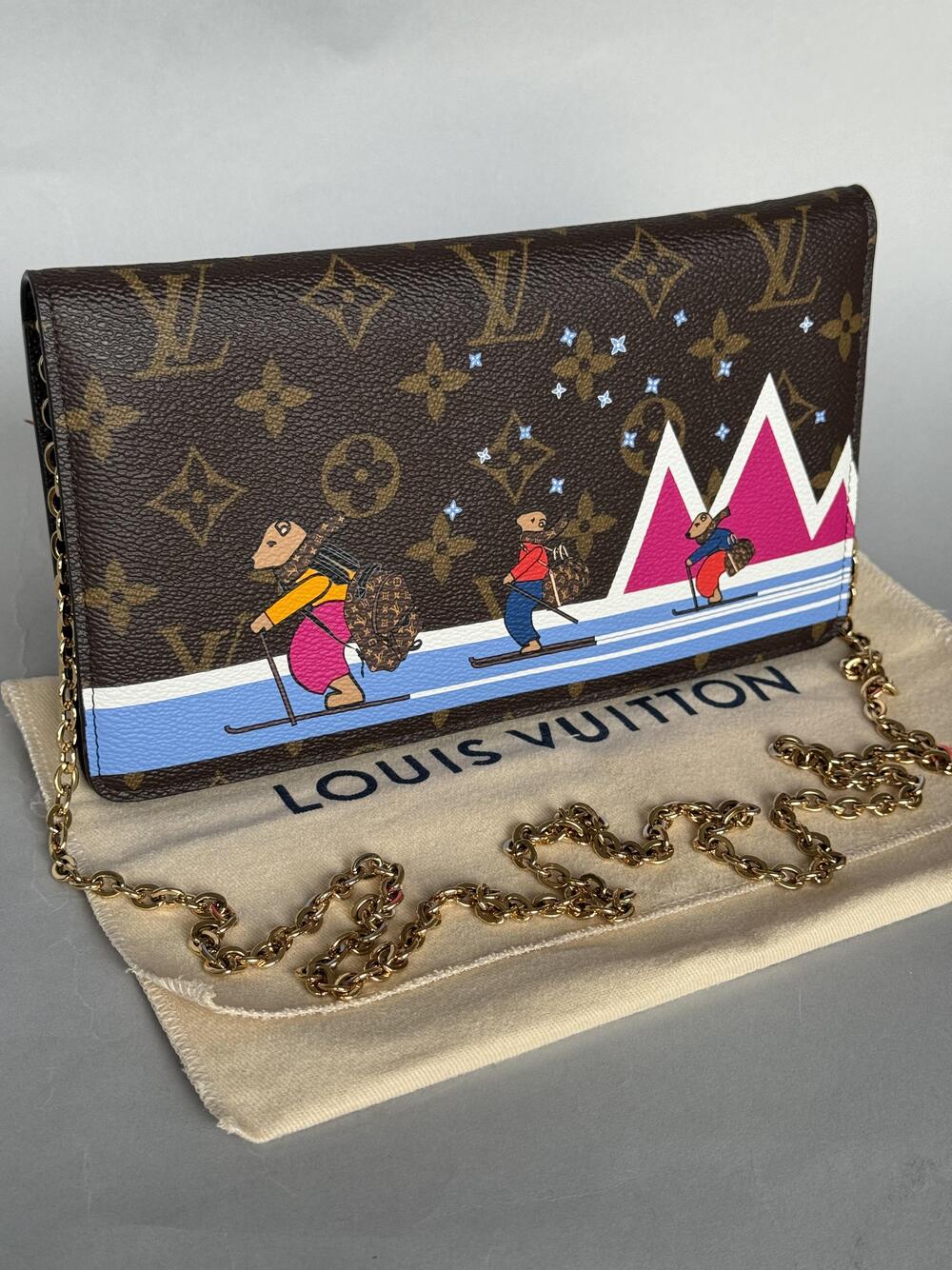 Louis Vuitton Pochette Weekend fra 2018 i monogram mønster med ski bjørner. Det er en LIMITED EDTION veske fra julekolleksjonen i 2018. Den har 3...Louis Vuitton Pochette Weekend fra 2018 i monogram mønster med ski bjørner. Det er en LIMITED EDTION veske fra julekolleksjonen i 2018. Den har 3 glidelås lommer med gullfarget hardware og rosa inni lommene. Lenken kan taes av ved behov og den kan brukes som veske, clutch eller lommebok. Et unikt samleobjekt!!