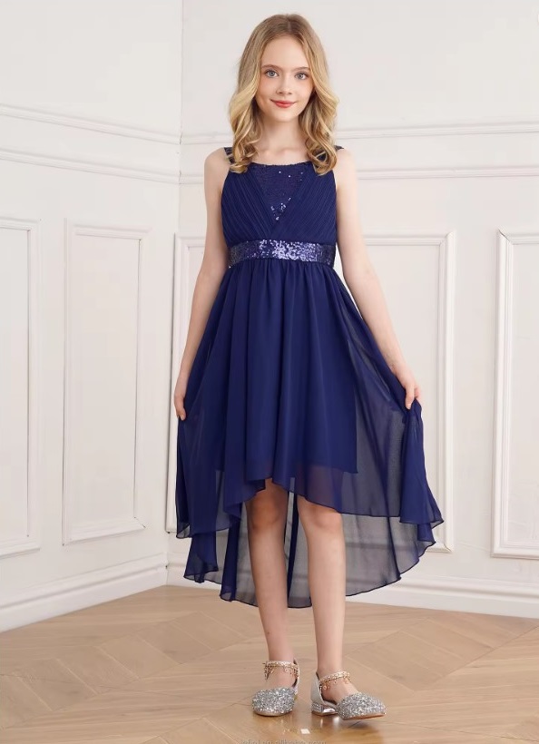 Vakker kjole til jente. Medium lengde. Skrått skjørt. Detaljer med paljetter på overdel og i midje. Sløyfe og lett skjørt med vidde. Passer til anledninger...Vakker kjole til jente. Medium lengde. Skrått skjørt. Detaljer med paljetter på overdel og i midje. Sløyfe og lett skjørt med vidde. Passer til anledninger som ball, bryllup, konfirmasjon, dåp eller når du skal være fin på en bursdag eller en sommerdag. 100% polyester. Vaskes skånsomt ved 30 grader.