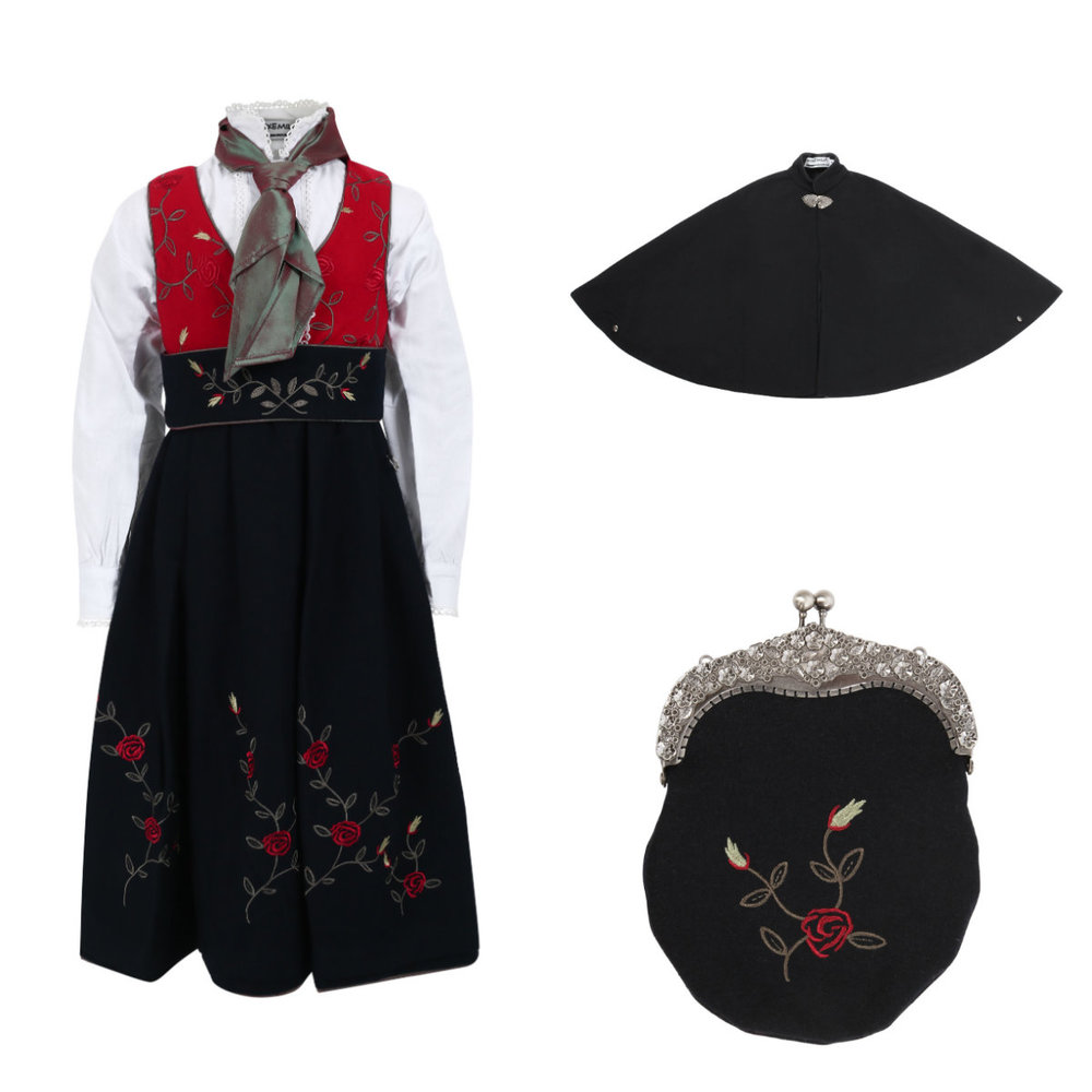 Maxemilia festdrakt, Norsk design i ull med brodrier. Skjorte og skjerf er inkludert. Festdrakten leveres med et legg, som enkelt kan tas opp. Dette forlenger... Les mer