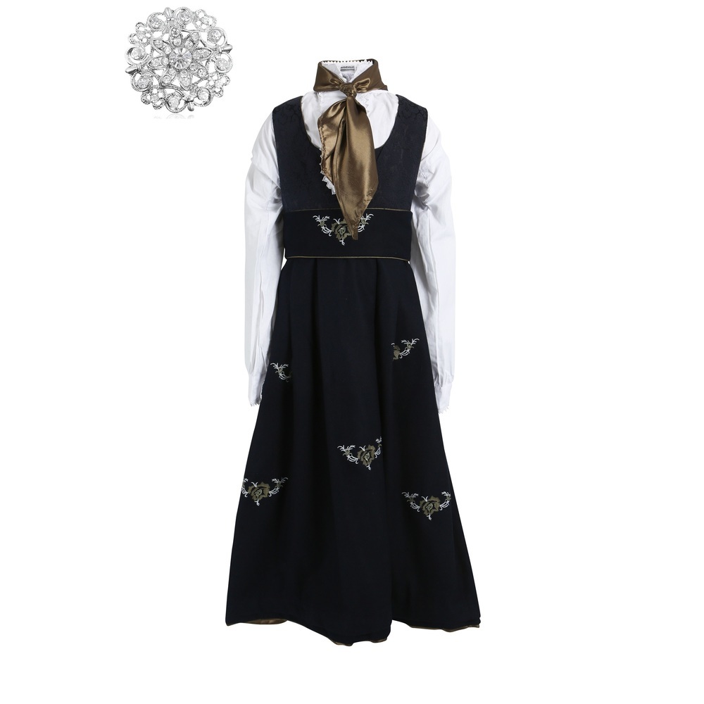 Maxemilia festdrakt, Norsk design i ull med broderier. Skjorte og skjerf er inkludert. Festdrakten leveres med et legg, som enkelt kan tas opp. Dette forlenger...Maxemilia festdrakt, Norsk design i ull med broderier. Skjorte og skjerf er inkludert. Festdrakten leveres med et legg, som enkelt kan tas opp. Dette forlenger brukstiden til ca 3 år.
