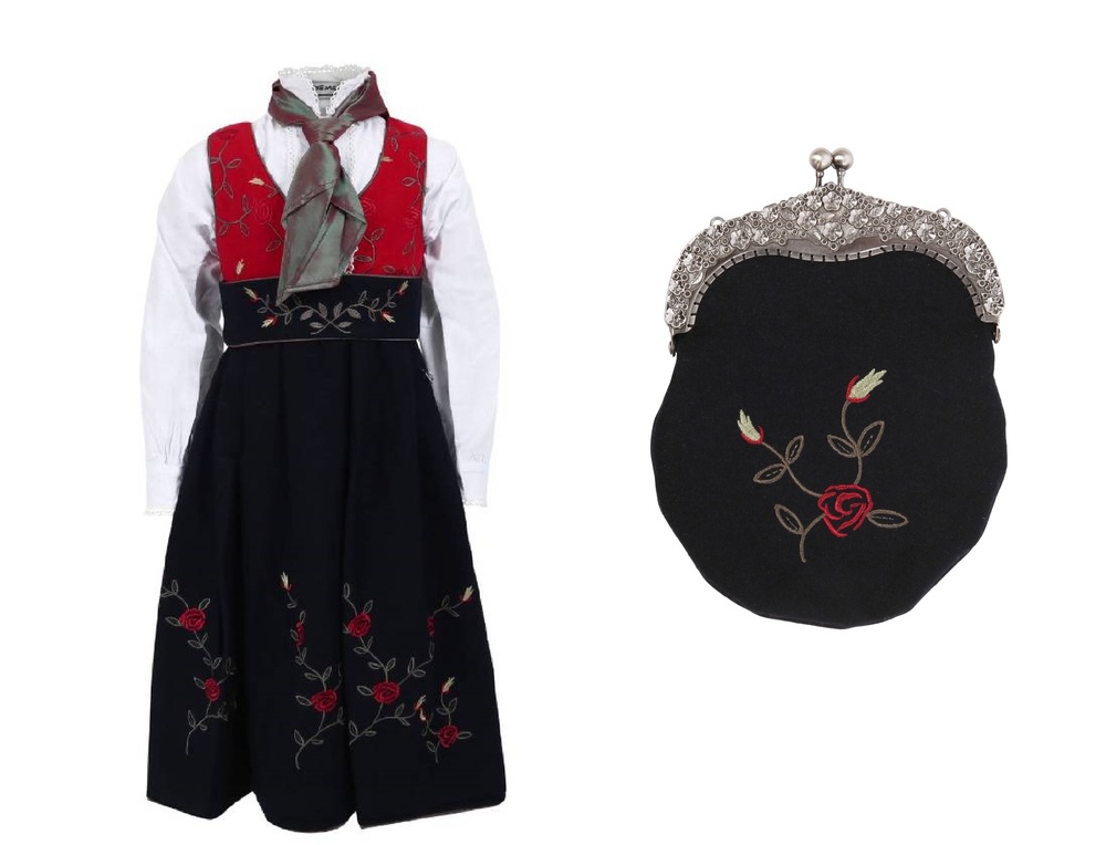 Maxemilia festdrakt, Norsk design i ull med brodrier. Skjorte og skjerf er inkludert. Festdrakten leveres med et legg, som enkelt kan tas opp. Dette forlenger... Les mer