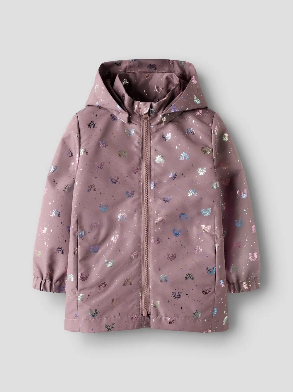 Vår, sommer og høst jakke i rosa med små regnbuer.