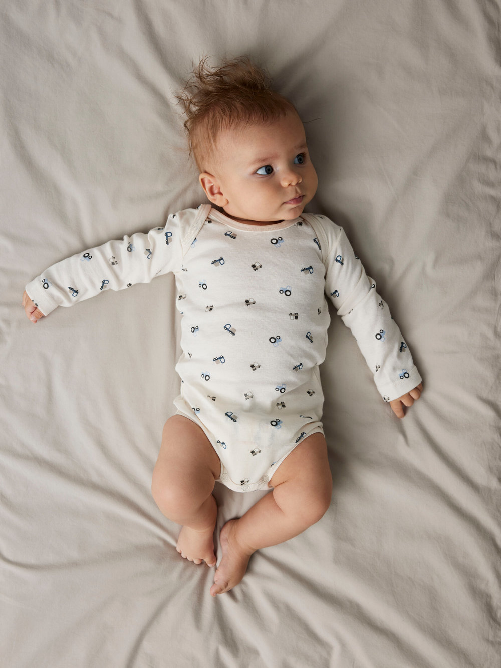 3-pk body med lang arm. Konvoluttåpning ved skulder.