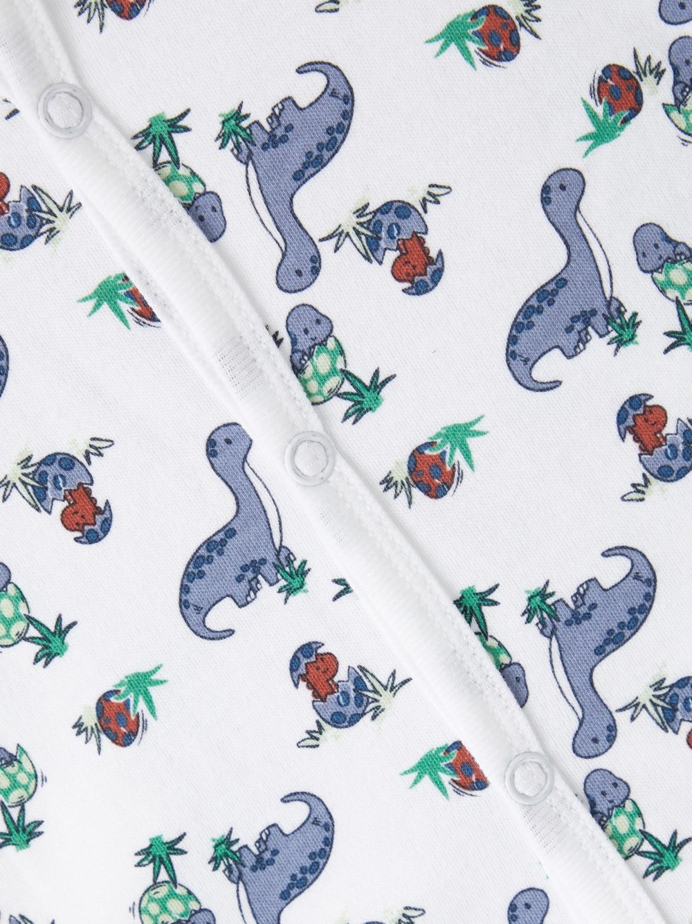 Pysj med fot i 2-pk. Pysjene lukkes med knapping. En pysj med print over hele og en ensfarget med et lite print.