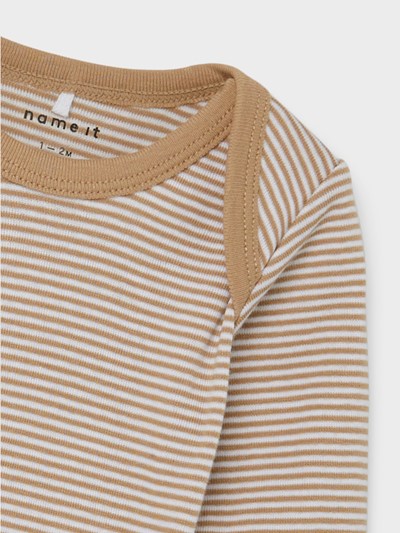 Body i 3-pk med søtt motiv i duse farger. Her får du en hvir, en med teddybjørner i bruntone og en brun/hvit stripede. Bodyene har...Body i 3-pk med søtt motiv i duse farger. Her får du en hvir, en med teddybjørner i bruntone og en brun/hvit stripede. Bodyene har konvoluttåpning på skuldrene.